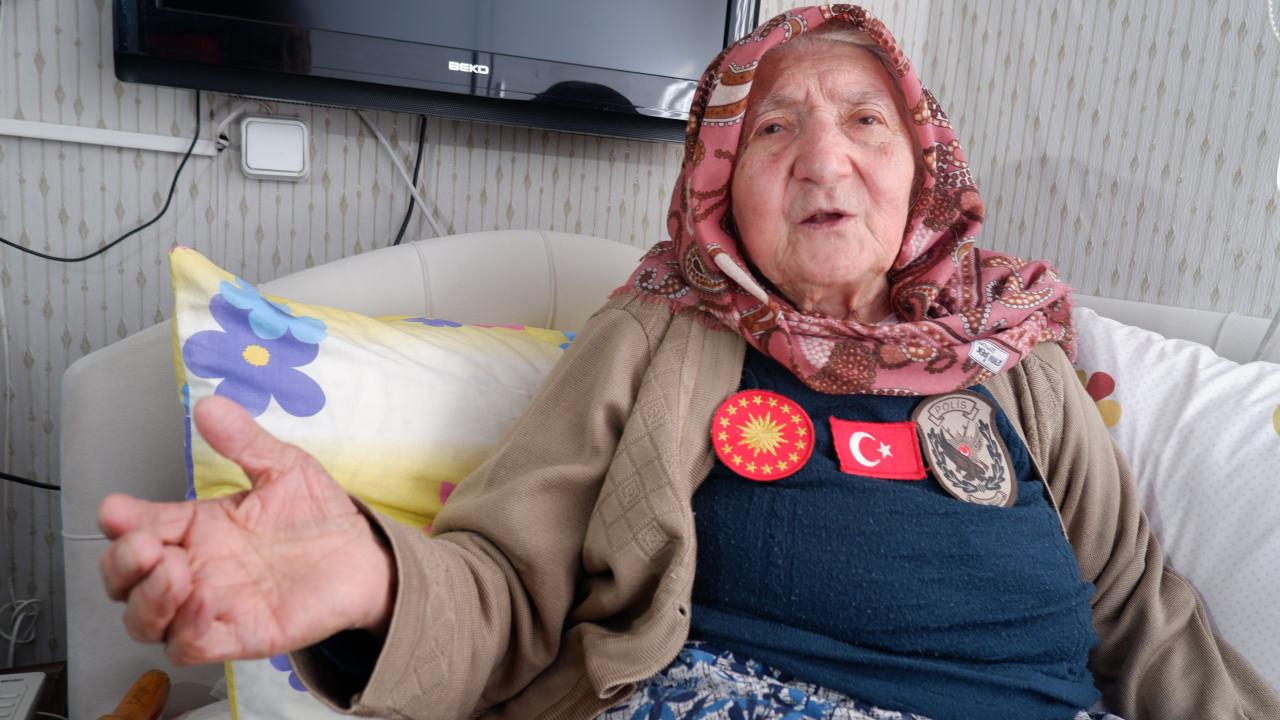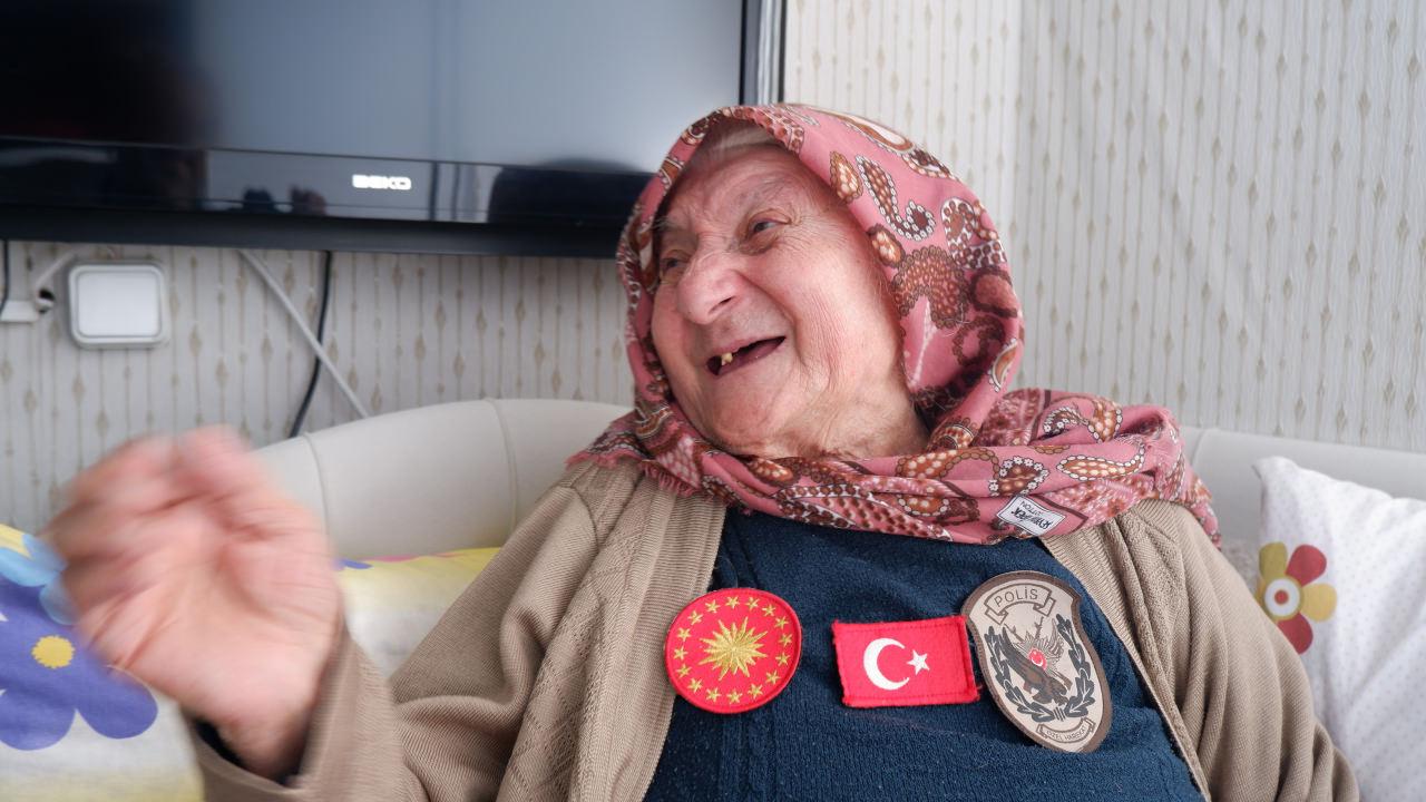 “Okusaydım asker veya polis olurdum” diyerek vatan sevgisini dile getiren 101 yaşındaki Aliye Nine, Cumhurbaşkanı Erdoğan sevgisi ile görenleri duygulandırıyor.
