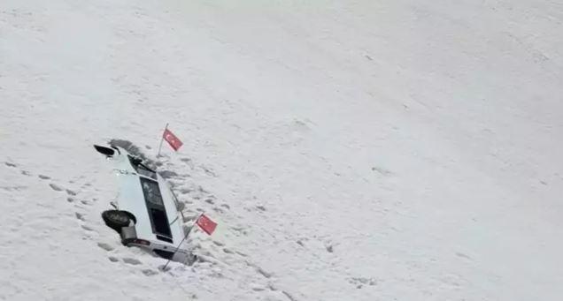Gece gelen başka bir çığ bir yolda bırakılan minibüsün üzerine düştü. Minibüs yoldan yaklaşık 100 metre uçuruma sürüklendi.