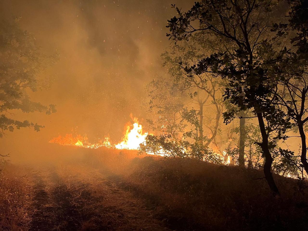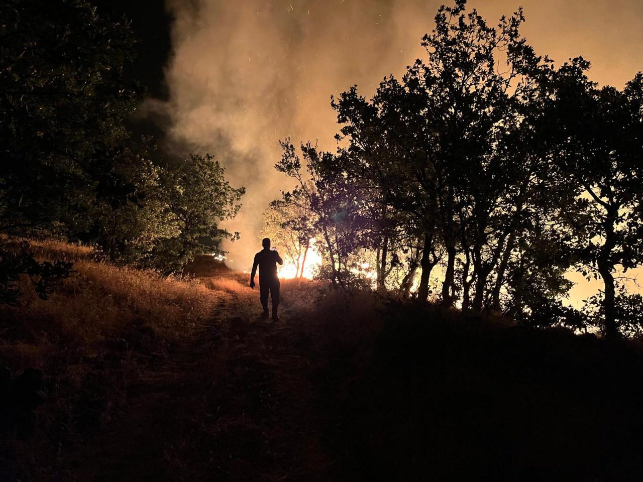 Saraycık köyü kırsalındaki dağlık alanda gece geç saatlerde yangın çıktı.