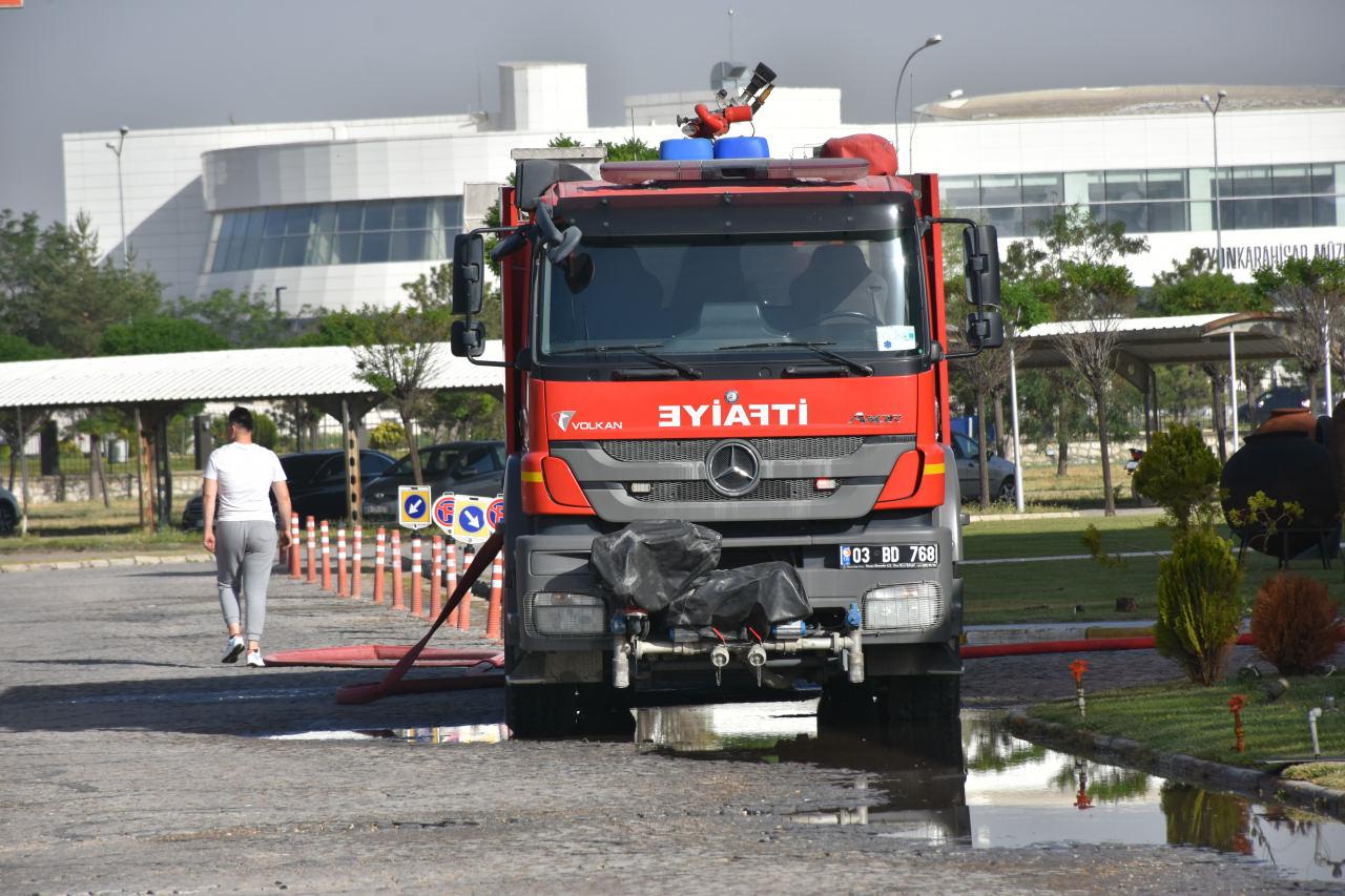 Afyonkarahisar Belediyesi itfaiye ekipleri, yangını yaklaşık 2 saatlik müdahale sonucu söndürdü. Ekiplerin oteldeki soğutma çalışmaları sürüyor.