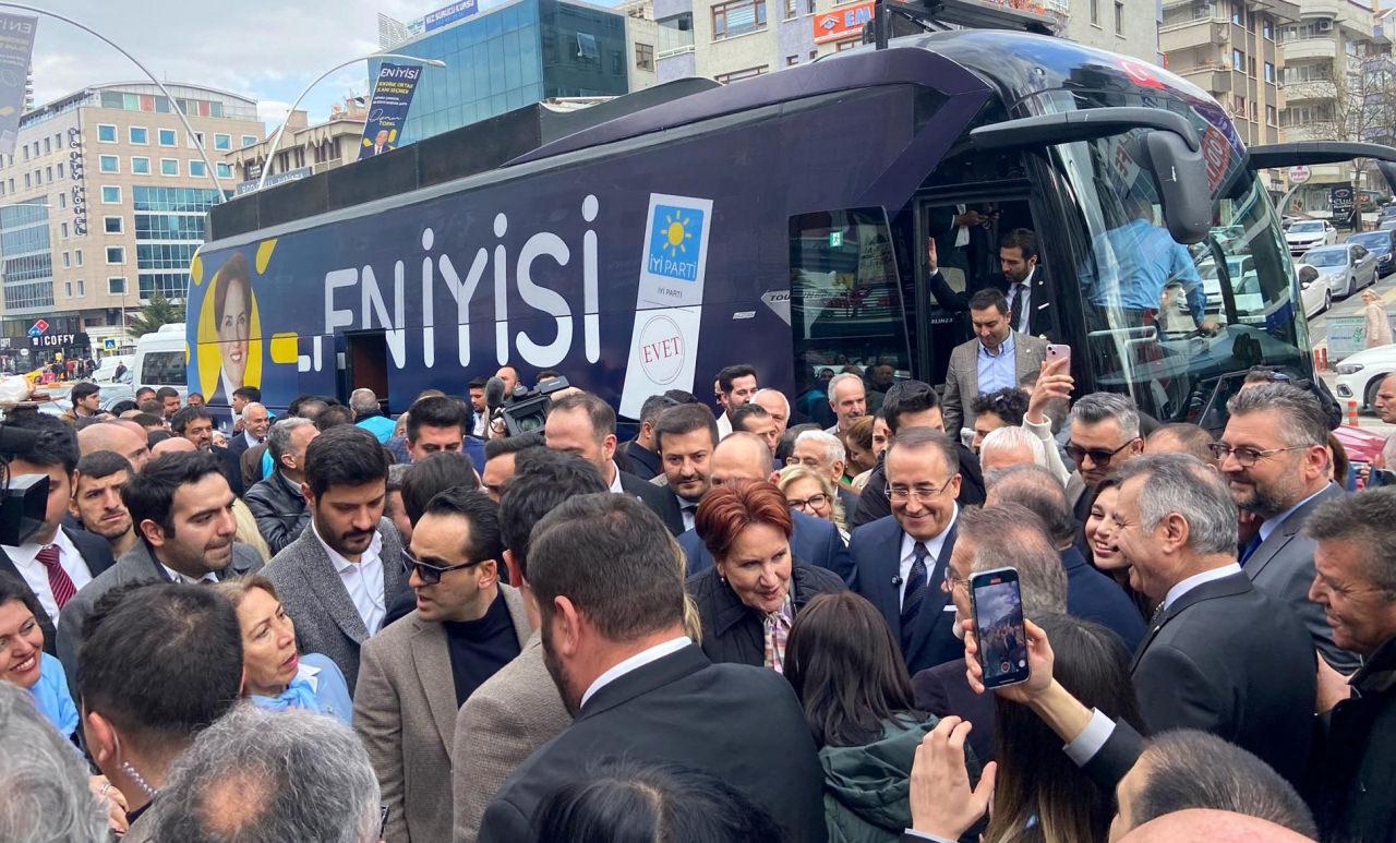30 yıllık aktif politika yaptığını vurgulayan Akşener, “Böyle din gibi bir siyasi ayrışma söz konusu değildi. Seçmen velinimet olmaktan çıktı. Siz velinimetsiniz. Bir seçim var. Hem Çankaya ilçe için hem de Ankara Büyükşehir için oy kullanacaksınız. Ben uzun uzun nutuk atmıyorum. Çünkü çok uzun bir süre zaten bu esnaf işini gezdik dolaştık, kamuoyuna mal etmeye gayret ettik. Bize bir şans istiyorum sizden. Bu yerel seçimlerde İYİ Parti güçlü çıkarsa sizin sesiniz çok daha güçlü duyulur. Geçtiğimiz dönemde size yönelik çalıştık. Bakın emeklilerle ilgili pek çok hatanın, kusurun düzeltilmesini dile getiren biziz. Bir şekilde bazıları düzeldi, bazı şeyler düzelmedi. Şimdi onları devam ettireceğiz. İktidar yerinde kalacak; ama biz güçlü çıkarsak iktidarı hoplatmaya devam edeceğiz, asabını bozmaya devam edeceğiz. Şimdi dolayısıyla güç istiyoruz” ifadelerini kullandı.