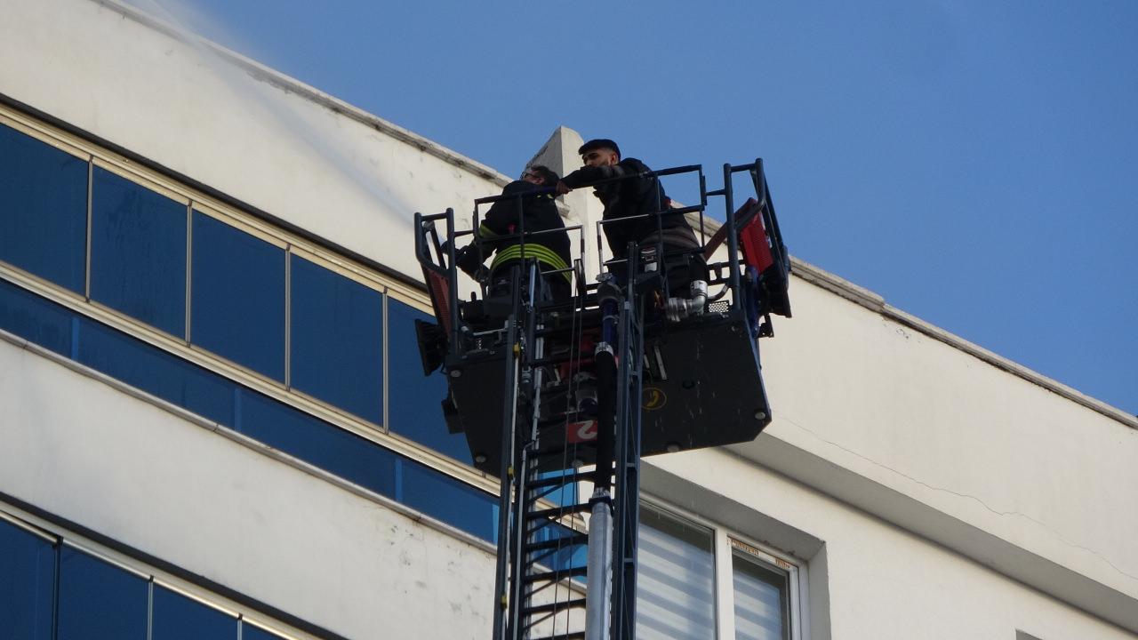 Yangın uzun uğraşlar sonucu kontrol altına alınırken, diğer 2 itfaiye eri ise ekiplerin yardımıyla çatıdan indirildi.