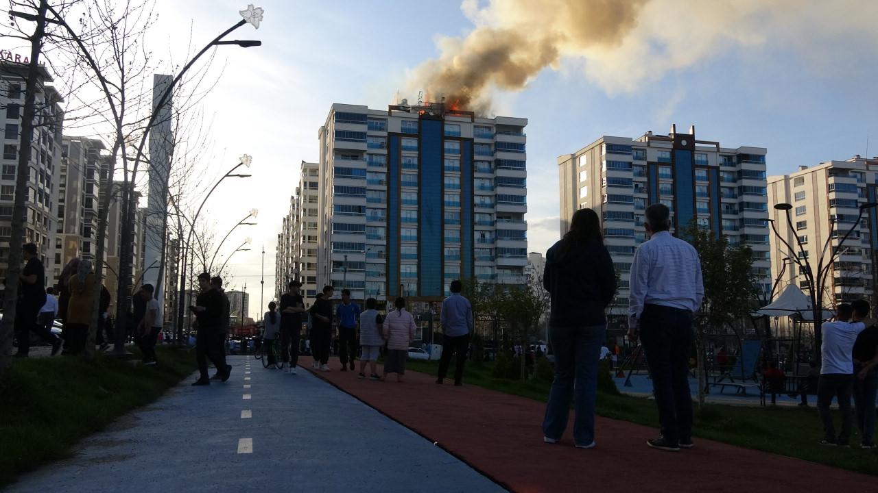 Yangın, merkez Kayapınar ilçesi Fırat Mahallesi Baba Tahir Caddesi’ndeki bir sitede bulunan D Blok’un çatısında çıktı.