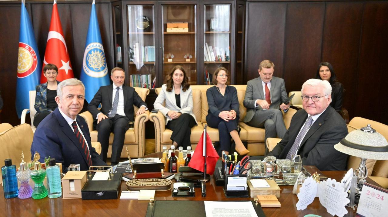 Ankara Büyükşehir Belediye Başkanı Mansur Yavaş ile de basına kapalı görüşen Almanya Cumhurbaşkanı Steinmeier yaklaşık 35 dakika süren görüşmede, Avrupa Birliği ile ilişkilerden ekonomi ve dünyada yaşanan savaşlara kadar pek çok konunun konuşulduğu belirterek, “Sadece bu heyettekiler değil, tüm Almanya seçimdeki büyük başarınızı biliyor. Almanya’da seçimler ilgiyle izlendi.” ifadelerini kullandı.