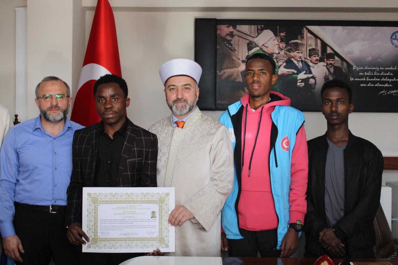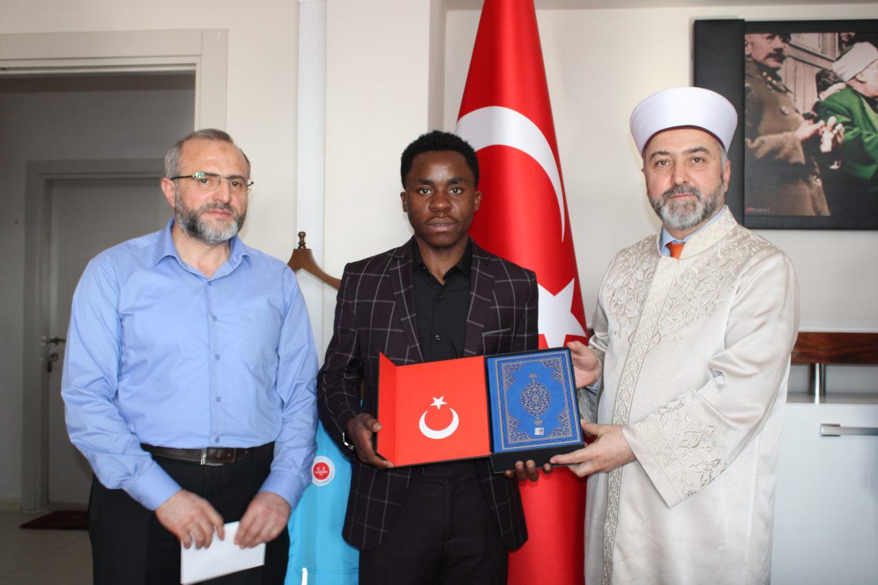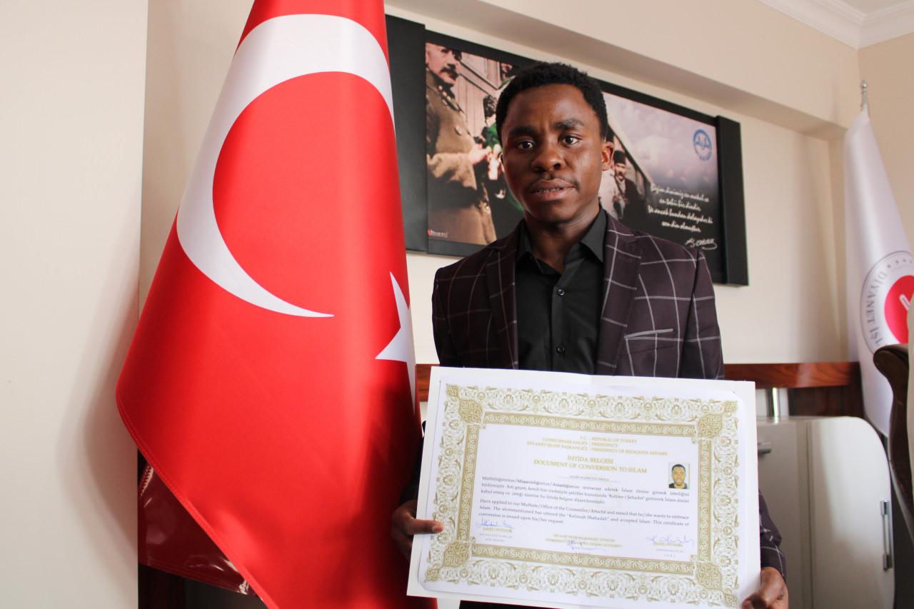 Mbala’nın Müslüman olup Ahmet ismini almasına şahitlik eden Malatya İl Müftüsü Şahin Yıldırım, “Kardeşimiz burada İslamiyet ile tanışıp ve kendi tercihi ile Müslüman olmaya vermiş. Bugün bu ana hep beraber şahitlik ediyoruz” diye konuştu