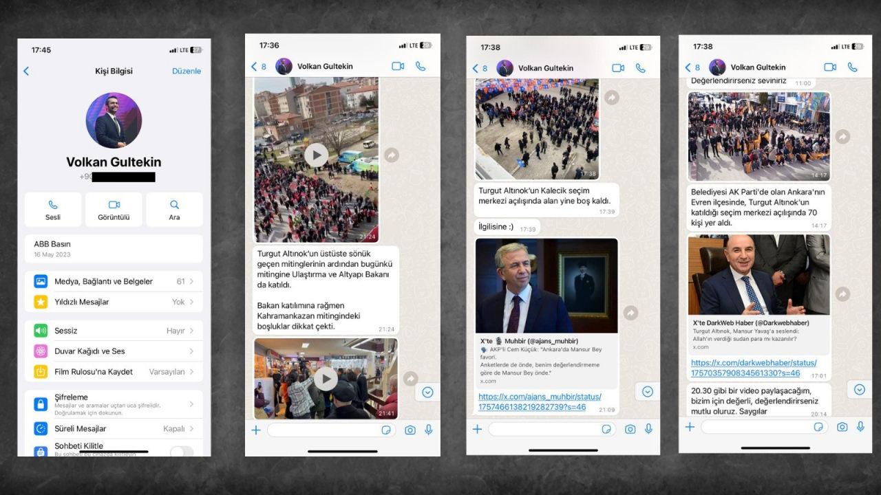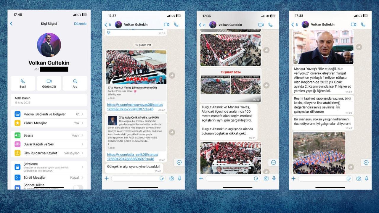 Yerel seçimlere sayılı günler kala CHP yönetimindeki Ankara Büyükşehir Belediyesi’nin kirli çamaşırları ortaya dökülmeye devam ediliyor. Ankara Büyükşehir Belediyesi Basın Yayın ve Halkla İlişkiler Dairesi Koordinatörü Volkan Memduh Gültekin’in, Mansur Yavaş’ın trol ekibi ile olan Whatsapp yazışmaları ortaya çıktı.