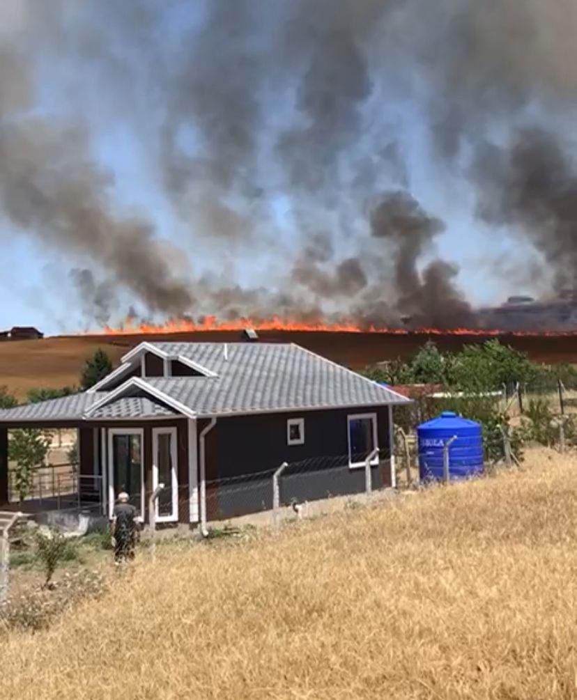 Ankara'da arazide çıkan yangında ekili 100 dönüm arpa ve buğday yandı.