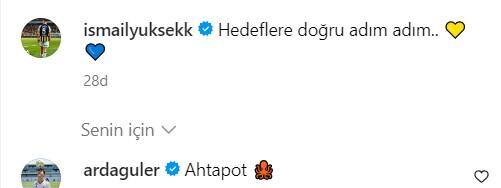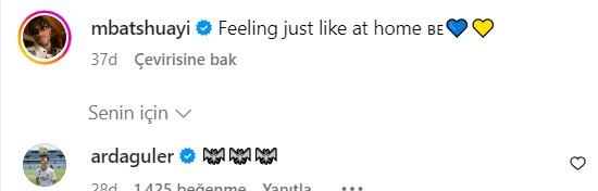 Real Madrid’de forma giyen Arda Güler, eski takımı Fenerbahçe’nin Union Saint-Gilloise karşısında aldığı galibiyete kayıtsız kalmadı. Milli futbolcu, Michy Batshuayi ve İsmail Yüksek’in maç sonu paylaşımlarına yorum yaptı. Batshuayi, Union Saint-Gilloise karşısında alınan galibiyetin ardından, “Evimdeymiş gibi hissediyorum” şeklinde bir paylaşım yaptı. Arda Güler, bu paylaşıma, Batshuayi ile özdeşleşen yarasa emojisi ile yorum yaptı. Arda Güler, İsmail Yüksek’in, “Hedeflere doğru adım adım” paylaşımına ise, “Ahtapot” yazdı.