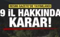 Resmi Gazete’de yayımlandı! 9 il hakkında karar