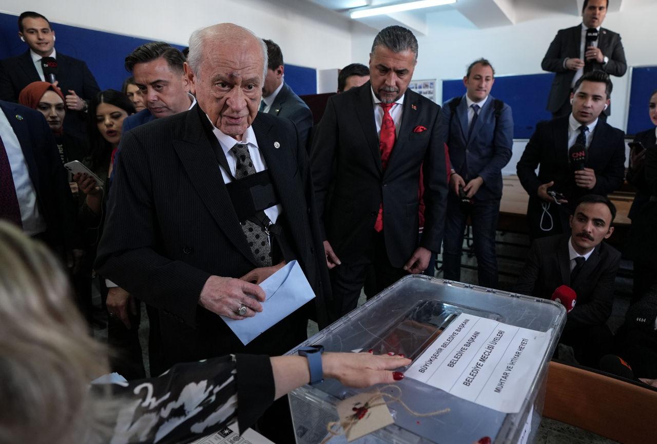 MHP Genel Başkanı Devlet Bahçeli, oyunu Ankara Anıttepe Ortaokulu’nda kullandı.