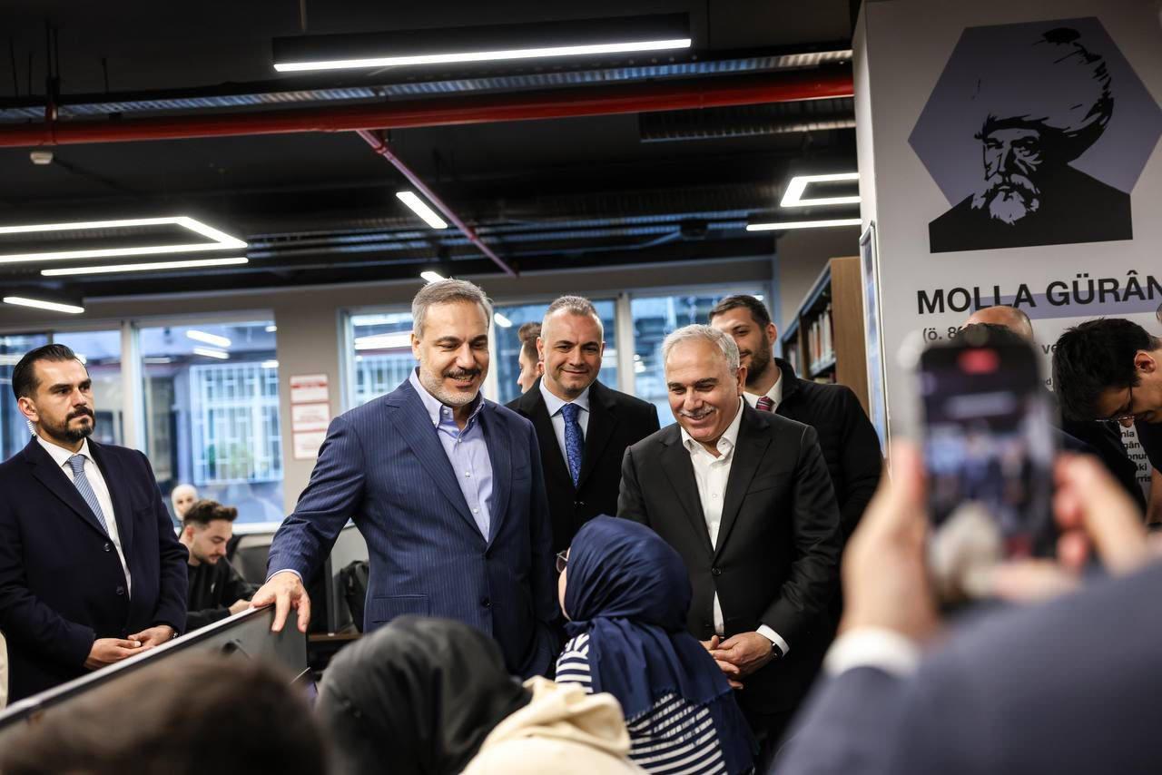 Bakan Fidan ve Fatih Belediye Başkanı Turan ardından 300 bin üyeye ulaşan Fatih Merkez Kütüphanesini ziyaret edip gençlerle sohbet etti.
