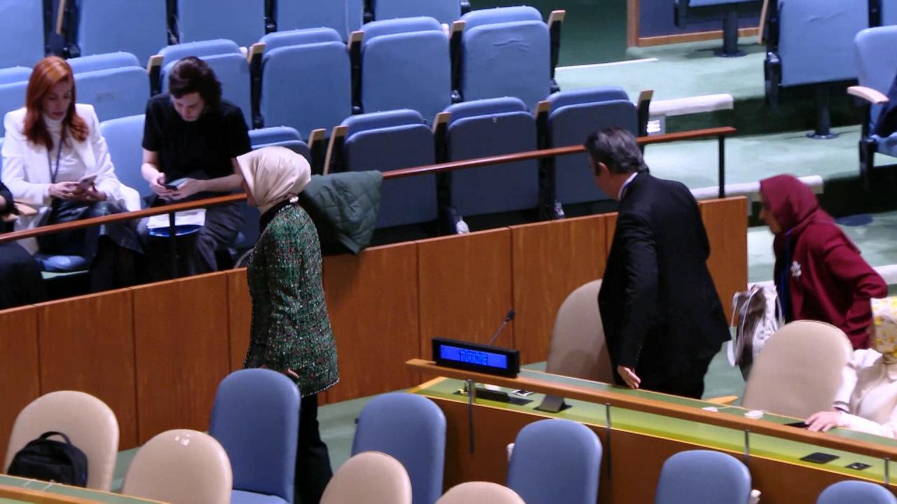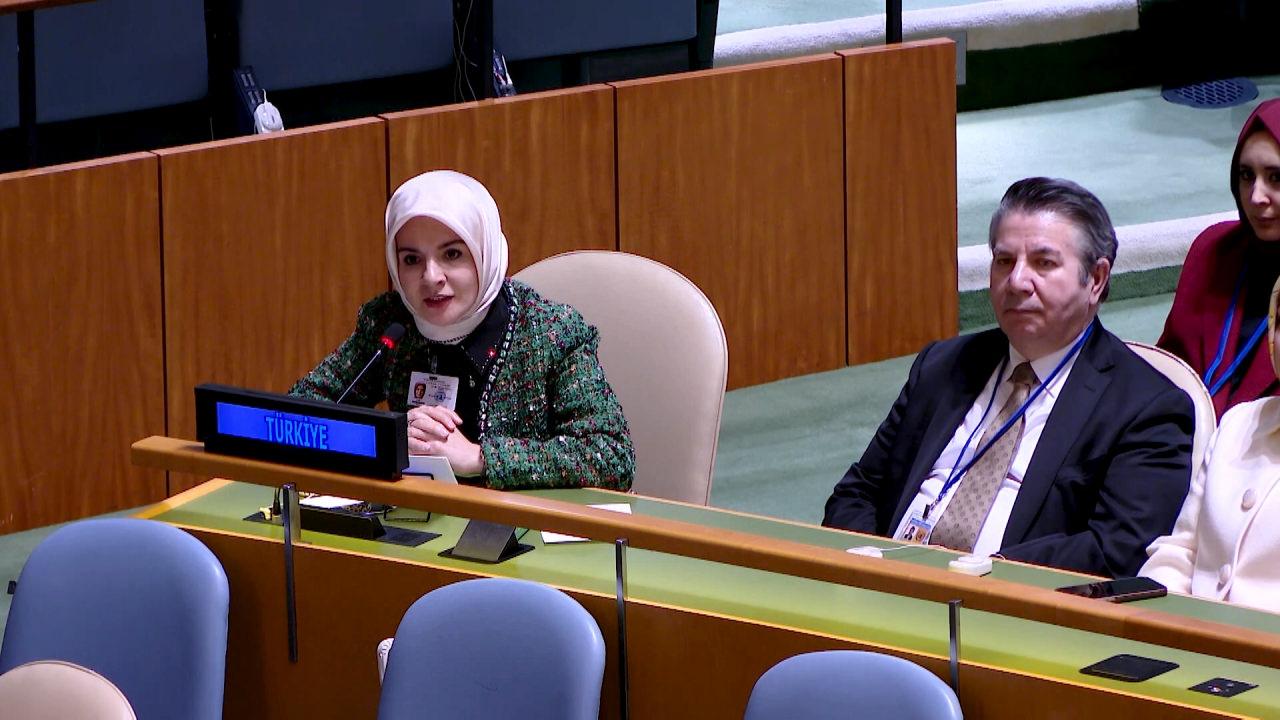 “İsrailli Bakan konuşurken orada durmamızın bir anlamı yoktu. Dünyanın gözü önünde böyle bir katliama sebep olanları dinlemek istemiyoruz. Kadınlar ve çocuklar konusunda onların söyleyebilecekleri hiçbir söz yok. Uyguladıkları soykırıma yönelik kendilerini savunmalarına, yalanlarını pervasızca ifade etmelerine dayanamazdık. Kendilerini savunmak için söyleyecekleri hiçbir lafın ehemmiyeti yok. Zulmün karşısında sessiz kalamazdık, Orada sözlü tepki verme durumu yoktu biz de salondan kalkıp giderek tepkimizi gösterdik.  Biz Türkiye olarak Cumhurbaşkanımızın önderliğinde her zaman Filistinli kardeşlerimizin yanında olduk, olmaya da devam edeceğiz. Konuşmamızda da Filistinli kardeşlerimize olan desteğimizi, hem BM’nin hem  diğer ülkelerin bu katliam karşısında ayağa kalkmaları, seslerini yükseltmeleri ve bir an önce ateşkesin sağlanması gerektiğini vurguladık.”