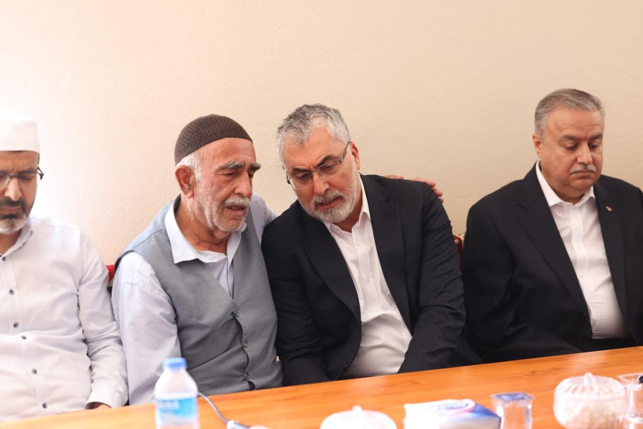 Çalışma ve Sosyal Güvenlik Bakanı Vedat Işıkhan ve beraberindekiler, Mardin’in Mazıdağı ilçesine bağlı Yücebağ Mahallesi’nde anız yangınlarında yaşamını yitiren Şeyhmus Demir, Hasan Demir, Mazhar Demir, Nuri Demir, Sinan Deviren, Remzi Yılmaz, Resul Yılmaz, Azat Yılmaz, Taliha Demir ve Fadıl Demir için kurulan taziyeevinde vatandaşlarla bir araya geldi. Ziyarette, Işıkhan vatandaşlara başsağlığı dileğinde bulundu, İl Müftüsü Enver Türkmen dua etti.