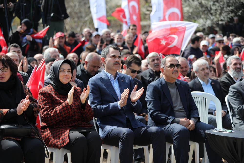 ONU SİZE EMANET EDİYORUMTörende konuşan Çevre, Şehircilik ve İklim Değişikliği Bakanı Mehmet Özhaseki, Murat Kurum için, “Senelerce çalışmasına şahit oldum. Bir evvelki bakanlık döneminde görevi devrettim, sonra da yeniden Murat kardeşimden görevi devraldım. İstanbul’un muradı olacak kardeşime başarılar diliyorum. Onu size emanet ediyorum. Çalışkanlığına şahidiz, bu işleri bildiğine şahidiz ve hakkıyla yapacağına da eminiz” diye konuştu.MURAT KURUM’DAN AÇIKLAMA!İBB Başkan Adayı Murat Kurum ise, “İstanbul’la Ümraniye ile ilgili hayalleriniz olursa bu hayalleri de teker teker gerçekleştirirsiniz. Risksiz, afetlere hazır ve İstanbul’a giden yolun bir zincirini daha atmanın mutluluğuyla buradayız. İstanbul’da hiçbir annemiz, hiçbir evladımız yastığa başını koyduğunda huzursuz uyumasın istiyoruz. Buraya geldiğimizde daha önce Ümraniye’deki imar problemlerine ilişkin, buradaki kentsel dönüşüme ilişkin vatandaşımızın bizden ne talebi olduysa, biz o talebi gidermek için gece gündüz çalıştık. Hekimbaşı’nda iş yapılacak, burada kentsel dönüşüme ihtiyaç var denildi, gidip orada kentsel dönüşüm başlattık. Mülkiyet sorunlarını tek tek çözebilmek için sizlerle birlikte mücadele verdik. Burada çocuklarımız huzur içerisinde vakit geçirsin, ailelerimiz mutlu olsun dedik. Bugün 5 yılda 46 bini afet konutunu bitirmiş, İstanbul’da 173 bin kentsel dönüşüm başlatmış, 365 bin sosyal konutu başlatmış, 81 ilde 72 milyon metrekareye millet bahçesi bitirmiş ve 40 tarihi meydanın ihyasını yapmış bir anlayışla karşınıza geldim” dedi.