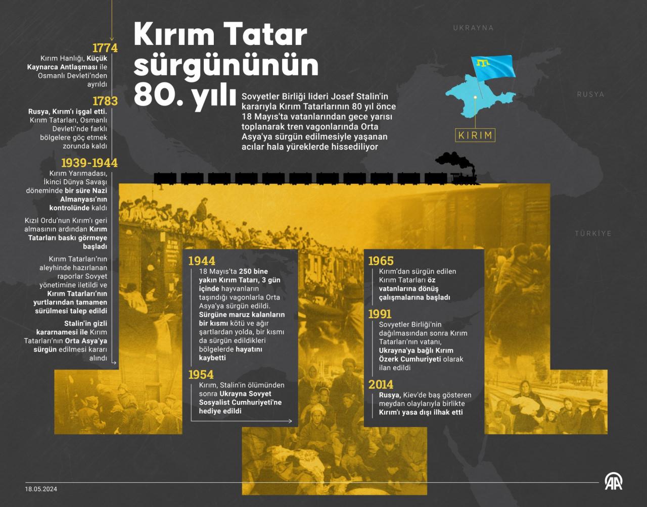 “Kırım Tatarı kardeşlerimizi ana yurtlarından kopartan, bugün hala acısını kalbimizde hissettiğimiz büyük acılara neden olan bu elim hadiseyi hüzünle yad ediyor, hayatını kaybeden soydaşlarımıza Allah’tan rahmet diliyorum. Türkiye olarak gerek Kırım’da yaşayan gerek işgal sonrasında bölgeden ayrılmak zorunda kalan Kırım Tatarlarının haklarını her hal ve şart altında savunmayı sürdüreceğiz.”