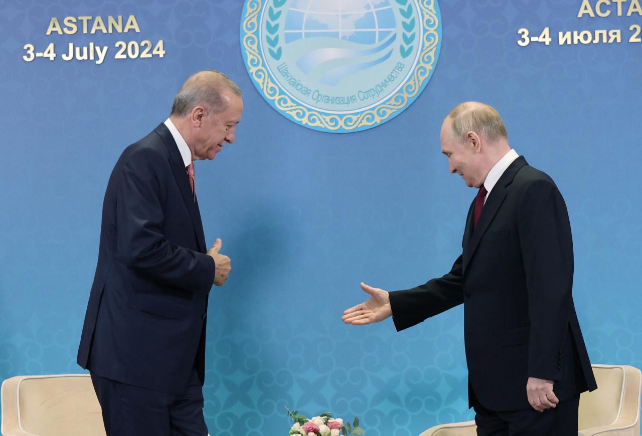 Cumhurbaşkanı Erdoğan, Şanghay İşbirliği Örgütü 24’ücü Devlet Başkanları Zirvesi’ndeki temasları kapsamında, Rusya Devlet Başkanı Putin ile bir araya geldi