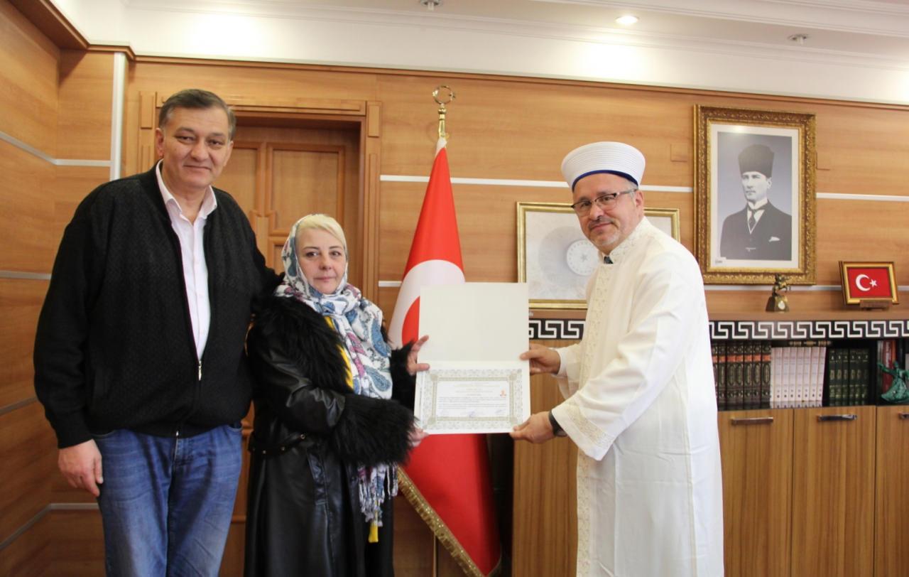 İslamiyet’ten etkilenerek Müslüman olmaya karar veren kadın için Bolu Müftülüğünde ihtida töreni düzenlendi.