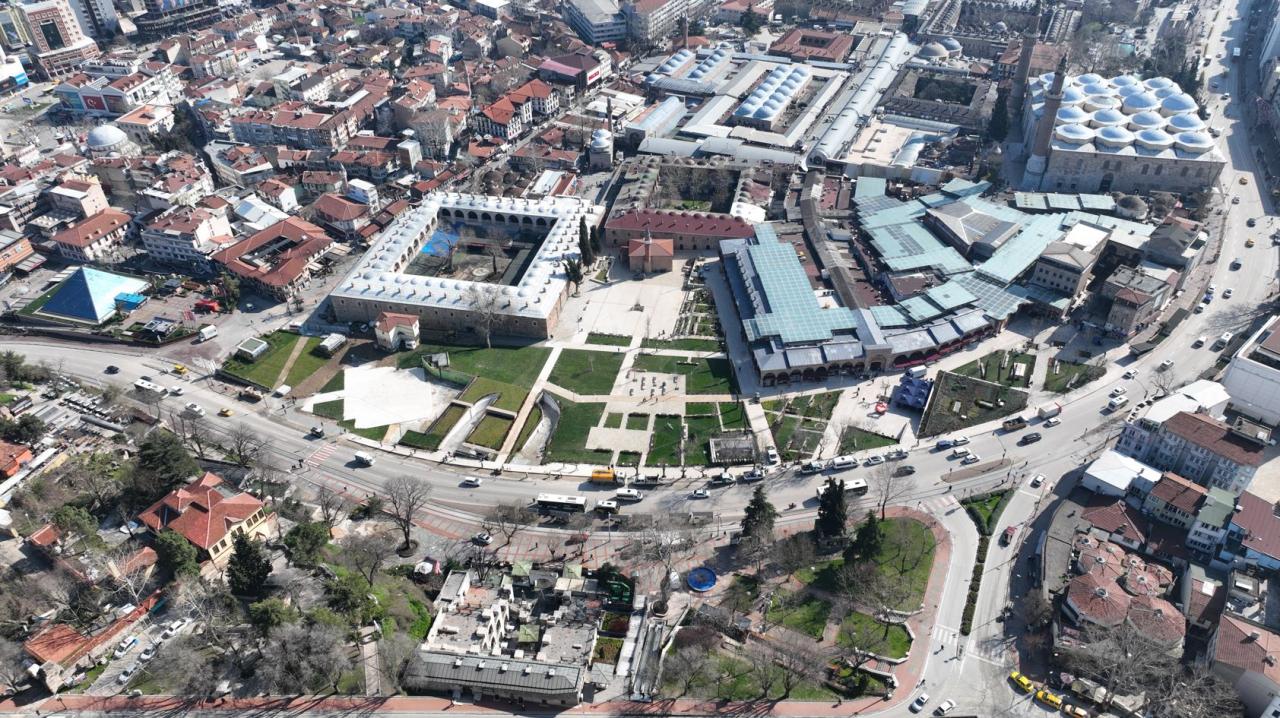Tarihi kentsel tasarım projelerinin ‘Heykel-Setbaşı-Yeşil-Emirsultan’ tarihi aksı üzerinde yürütüleceğini belirten Başkan Aktaş, özellikle Hanlar Bölgesi’nde yapılan çalışmaların Bursa’ya çok yakıştığını ifade etti. Dirençli şehir Bursa’nın en önemli bileşenlerinden birisinin de yüzyılların yorgunluğunu ve derin izlerini taşıyan tarihi alanlar olduğunu dile getiren Başkan Aktaş, “Uzun yıllardır konuşulan Bursa’nın kalbi konumundaki Hanlar Bölgesi’ndeki ‘Çarşıbaşı meydanı’ projemizle tarihe imza attık. Tam bir açık hava müzesi olan tarihi bölgede 14 tane han, 1 bedesten, 13 açık çarşı, 7 üstü örtülü çarşı, 11 kapalı çarşı, 4 pazar alanı, 21 camii, 177 sivil mimarlık örneği yapı, 1 okul ve 3 türbe bulunuyor. Çevre Şehircilik ve İklim Değişikliği Bakanlığı destekleriyle hayata geçirdiğimiz ‘Tarihi Çarşı ve Hanlar Bölgesi Çarşıbaşı Kentsel Dönüşüm Projesi’ kapsamında tarihi bölgeyi kuşatan 38 binayı yıktık. Etrafı dükkânlarla sarılı 342 yıllık Esiri Mehmet Dede Türbesi ile geçmişi 1549’a kadar uzanan Sağrıcı Sungur Mescidi’ni gün yüzüne çıkarttık. Bakırcılar Meydanı, İpekhan Meydanı, Sağrıcı Sungur Mescidi ve peyzaj düzenlemelerini halkın hizmetine açıldı. Otoparkın da üstü tamamen kapatılarak meydan bir bütün haline geldi. Ancak çalışmalarımız henüz bitmedi. Bu daha başlangıçtı. Tarih boyunca ticaretin kalbinin attığı, UNESCO dünya mirası listesinde yer alan Hanlar Bölgesi’ni ilmek ilmek işleyeceğiz. Hanlar Bölgesi ile birlikte Payitaht şehir Bursa’da tarihi gün yüzüne çıkarmaya devam edeceğiz” dedi.