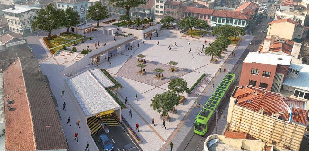 Tarihi kentsel tasarım projelerinin ‘Heykel-Setbaşı-Yeşil-Emirsultan’ tarihi aksı üzerinde yürütüleceğini belirten Başkan Aktaş, özellikle Hanlar Bölgesi’nde yapılan çalışmaların Bursa’ya çok yakıştığını ifade etti. Dirençli şehir Bursa’nın en önemli bileşenlerinden birisinin de yüzyılların yorgunluğunu ve derin izlerini taşıyan tarihi alanlar olduğunu dile getiren Başkan Aktaş, “Uzun yıllardır konuşulan Bursa’nın kalbi konumundaki Hanlar Bölgesi’ndeki ‘Çarşıbaşı meydanı’ projemizle tarihe imza attık. Tam bir açık hava müzesi olan tarihi bölgede 14 tane han, 1 bedesten, 13 açık çarşı, 7 üstü örtülü çarşı, 11 kapalı çarşı, 4 pazar alanı, 21 camii, 177 sivil mimarlık örneği yapı, 1 okul ve 3 türbe bulunuyor. Çevre Şehircilik ve İklim Değişikliği Bakanlığı destekleriyle hayata geçirdiğimiz ‘Tarihi Çarşı ve Hanlar Bölgesi Çarşıbaşı Kentsel Dönüşüm Projesi’ kapsamında tarihi bölgeyi kuşatan 38 binayı yıktık. Etrafı dükkânlarla sarılı 342 yıllık Esiri Mehmet Dede Türbesi ile geçmişi 1549’a kadar uzanan Sağrıcı Sungur Mescidi’ni gün yüzüne çıkarttık. Bakırcılar Meydanı, İpekhan Meydanı, Sağrıcı Sungur Mescidi ve peyzaj düzenlemelerini halkın hizmetine açıldı. Otoparkın da üstü tamamen kapatılarak meydan bir bütün haline geldi. Ancak çalışmalarımız henüz bitmedi. Bu daha başlangıçtı. Tarih boyunca ticaretin kalbinin attığı, UNESCO dünya mirası listesinde yer alan Hanlar Bölgesi’ni ilmek ilmek işleyeceğiz. Hanlar Bölgesi ile birlikte Payitaht şehir Bursa’da tarihi gün yüzüne çıkarmaya devam edeceğiz” dedi.