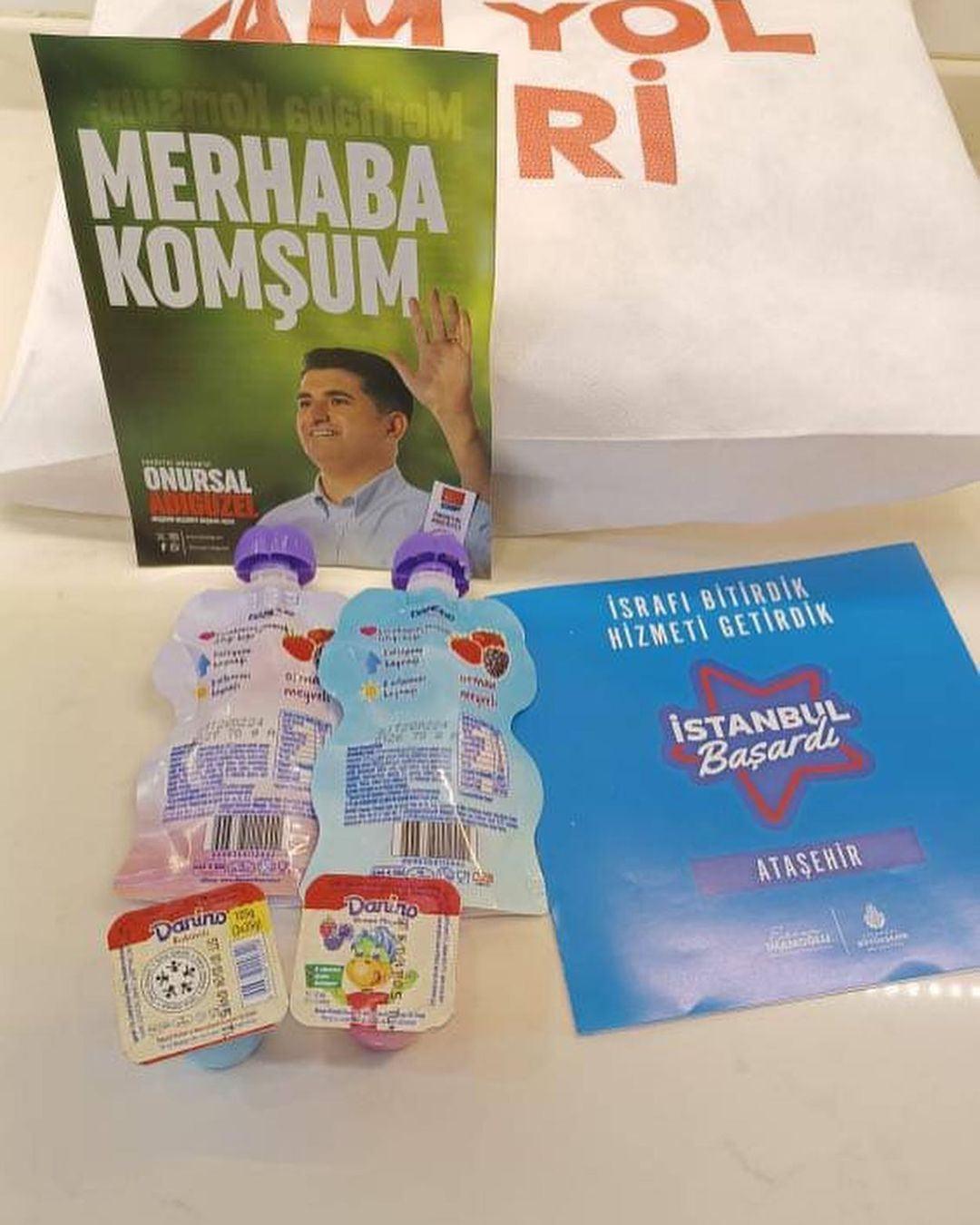 Dağıtılan broşürlerde İBB’nin adı yazdığı görülürken Danone marka yoğurtların hangi bütçeyle alındığı merak konusu oldu.