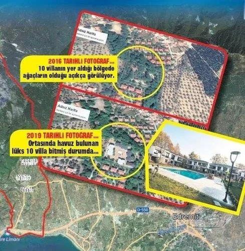 Kaz Dağları Milli Parkı’nın hemen yanında bulunan Güre Köyü’nde İmamoğlu ailesinin 10 villası bulunuyor. İmamoğlu ailesi, 10 villayı ağaç katliamı yaparak dikmişti. Kaz Dağları Milli Parkı’nın hemen yanında Ekrem İmamoğlu ve babası Hasan İmamoğlu’na ait 11 bin 925 metrekarelik arsada yüzlerce ağacın kesildiği tespit edildi. Kaz Dağları’nda Hasan İmamoğlu’nun 6 bin 914 metrekare, Ekrem İmamoğlu’nun 5 bin 11 metrekare arsası ve dairesi bulunuyor..
