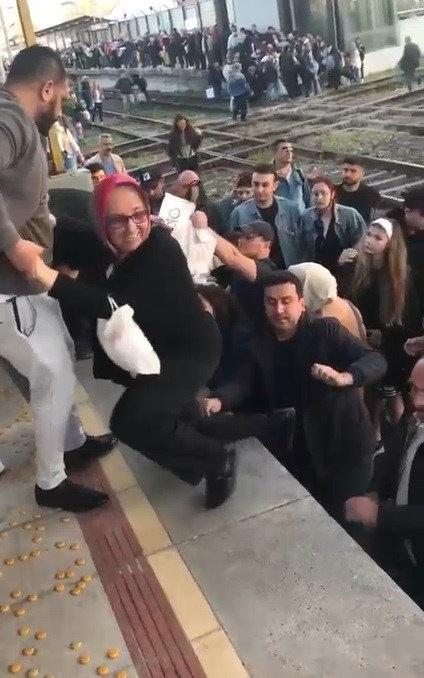 Birbirlerini raylardan yukarıya çekerek istasyona çıktılar