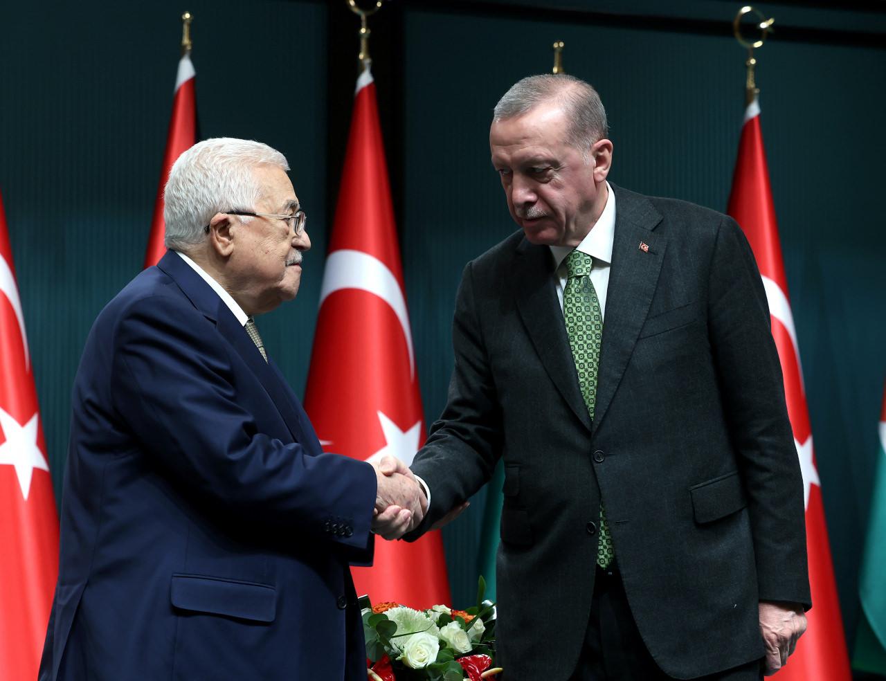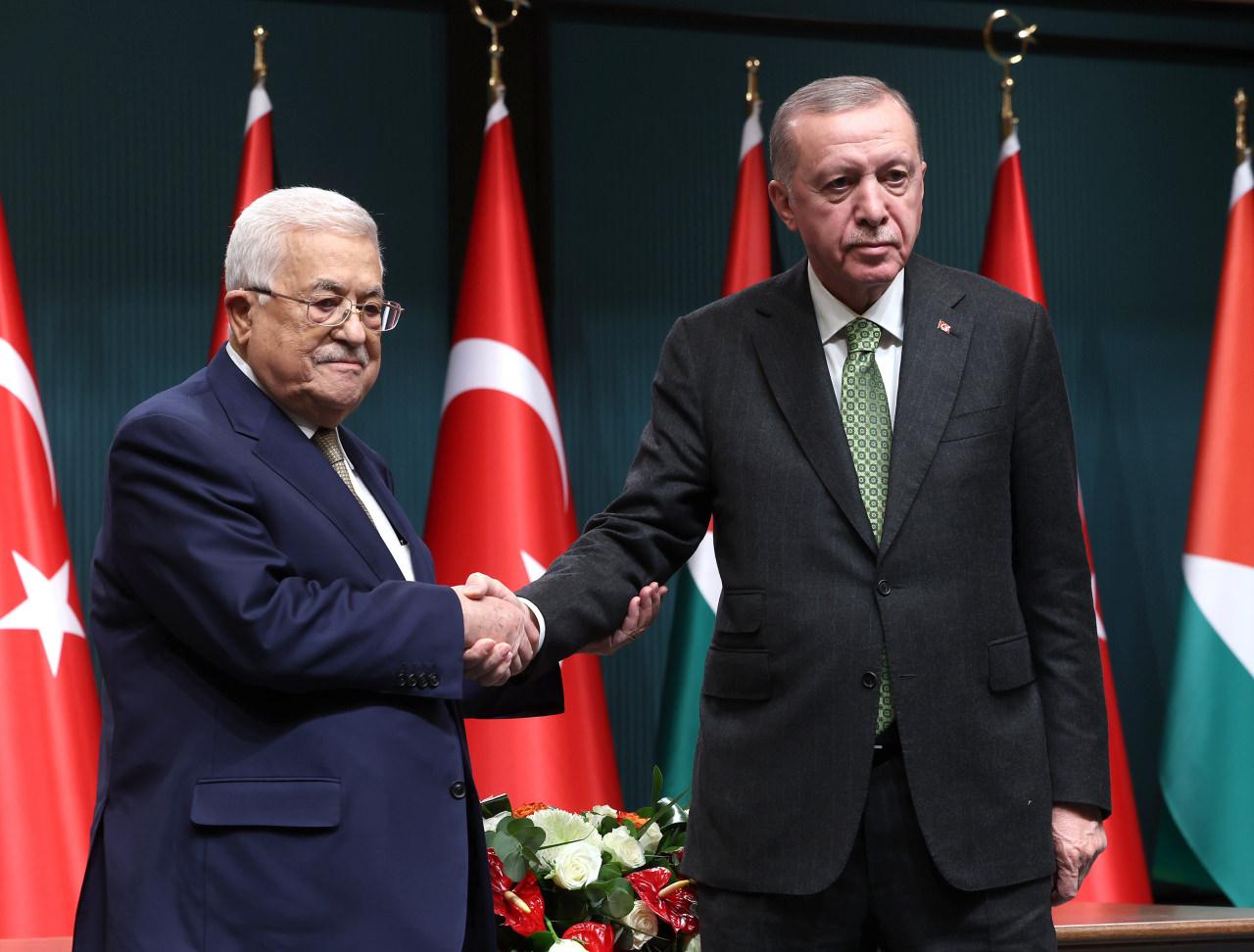 Cumhurbaşkanı Recep Tayyip Erdoğan, Filistin Devlet Başkanı Mahmud Abbas ile Cumhurbaşkanlığı Külliyesinde bir araya geldi. İkili görüşmenin ardından Cumhurbaşkanı Erdoğan Mahmud Abbas ile ortak basın toplantısı gerçekleştirdi. Türkiye ve Türk milletinin Filistin davasına her zaman destek verdiğini ifade eden Cumhurbaşkanı Erdoğan, “Filistin’in gönlümüzde müstesna bir yeri olmuştur. Değerli kardeşim en son geçtiğimiz Temmuz ayında ülkemiz ziyaret etmişti. Bugün yaptığımız istişarelerde Filistin’deki son durumu etraflıca ele aldık. Filistinli kardeşlerimiz tarihlerinin en zor dönemlerinden birini yaşıyor. 7 Ekim’den bu yana Gazze ve Ramallah’ta masum insanlara karşı İsrail’in düzenlediği saldırılar sonucunda 32 bine yakın Filistinli şehit oldu. 72 binden fazla kişi yaralandı” dedi.
