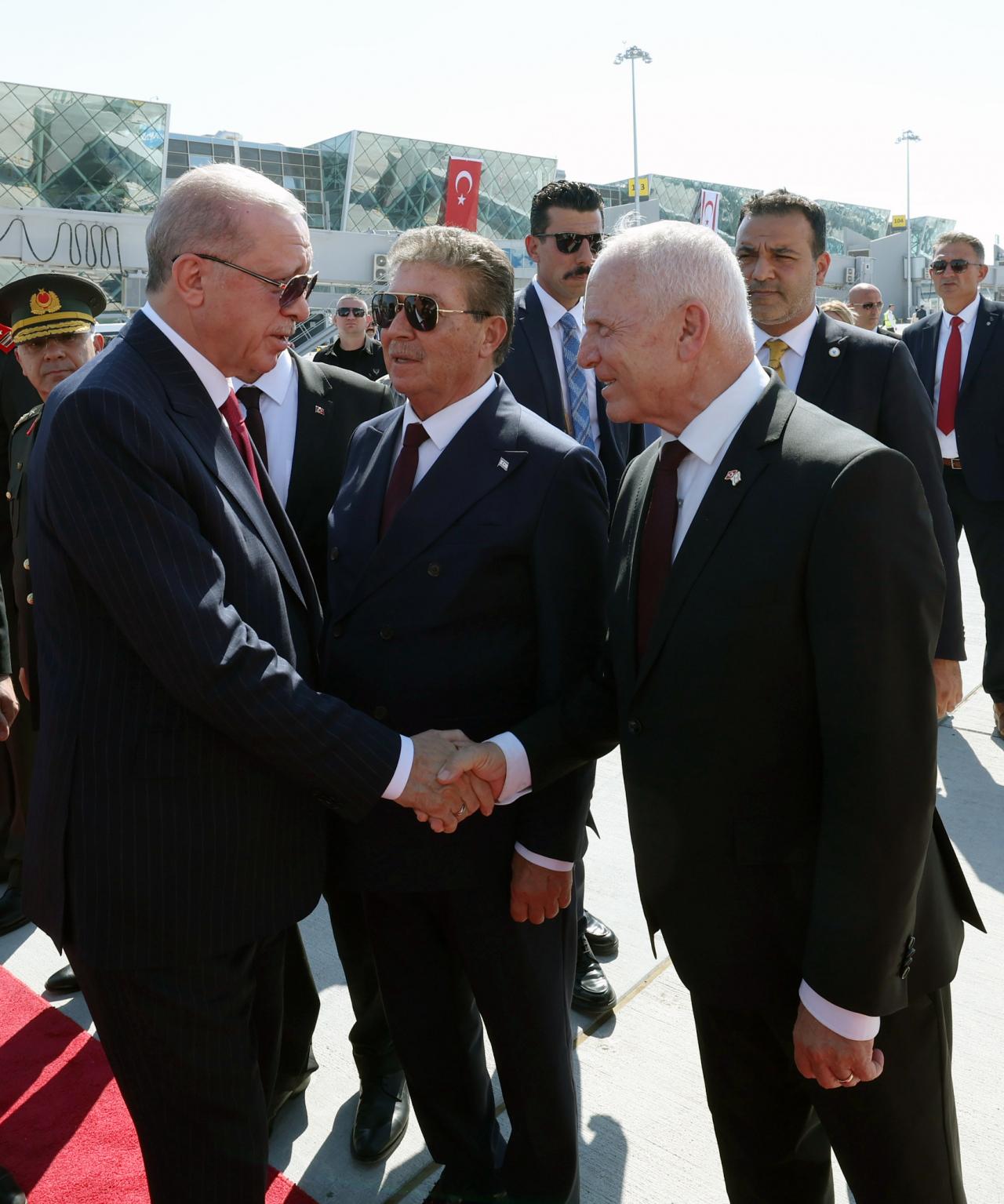 Erdoğan’ı, Ercan Havalimanı’ndan KKTC Cumhurbaşkanı Ersin Tatar, KKTC Başbakanı Ünal Üstel ile Türkiye’nin Lefkoşa Büyükelçisi Metin Feyzioğlu uğurladı.