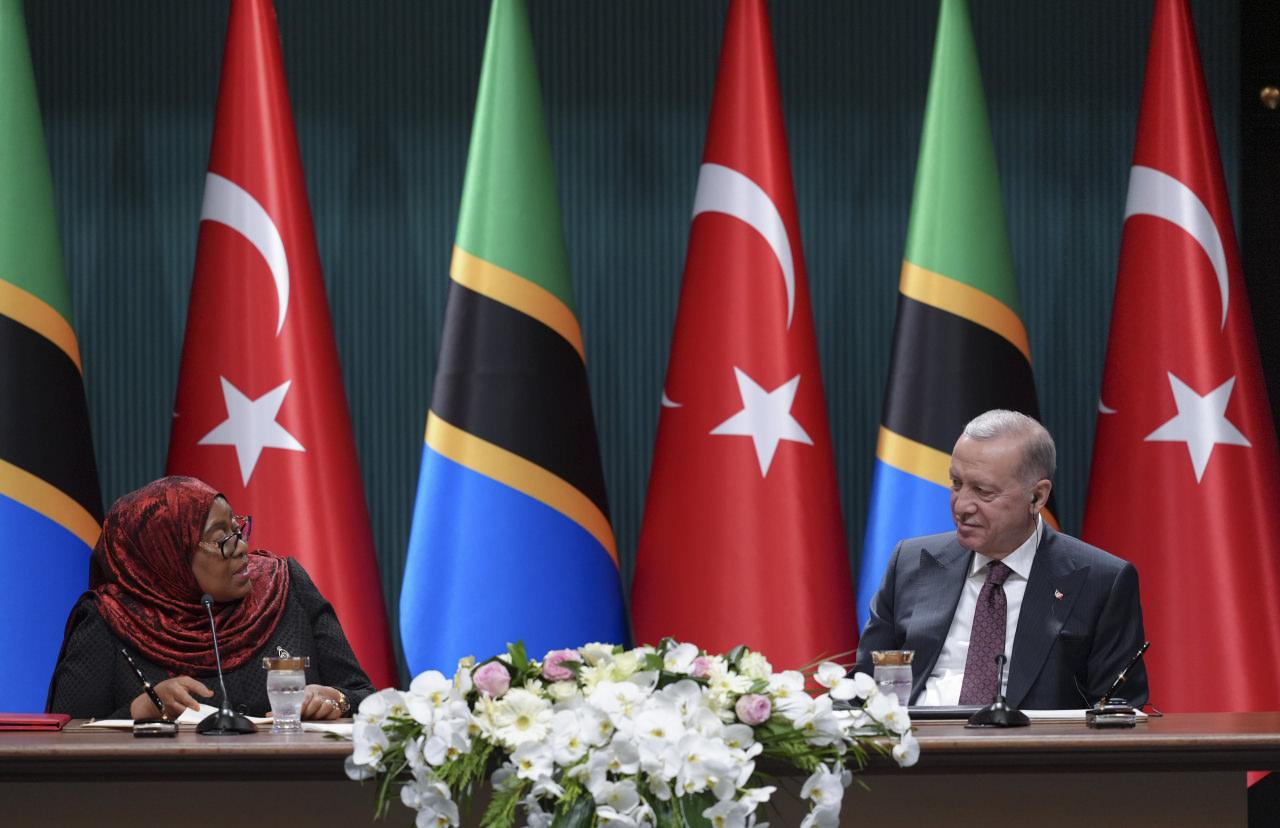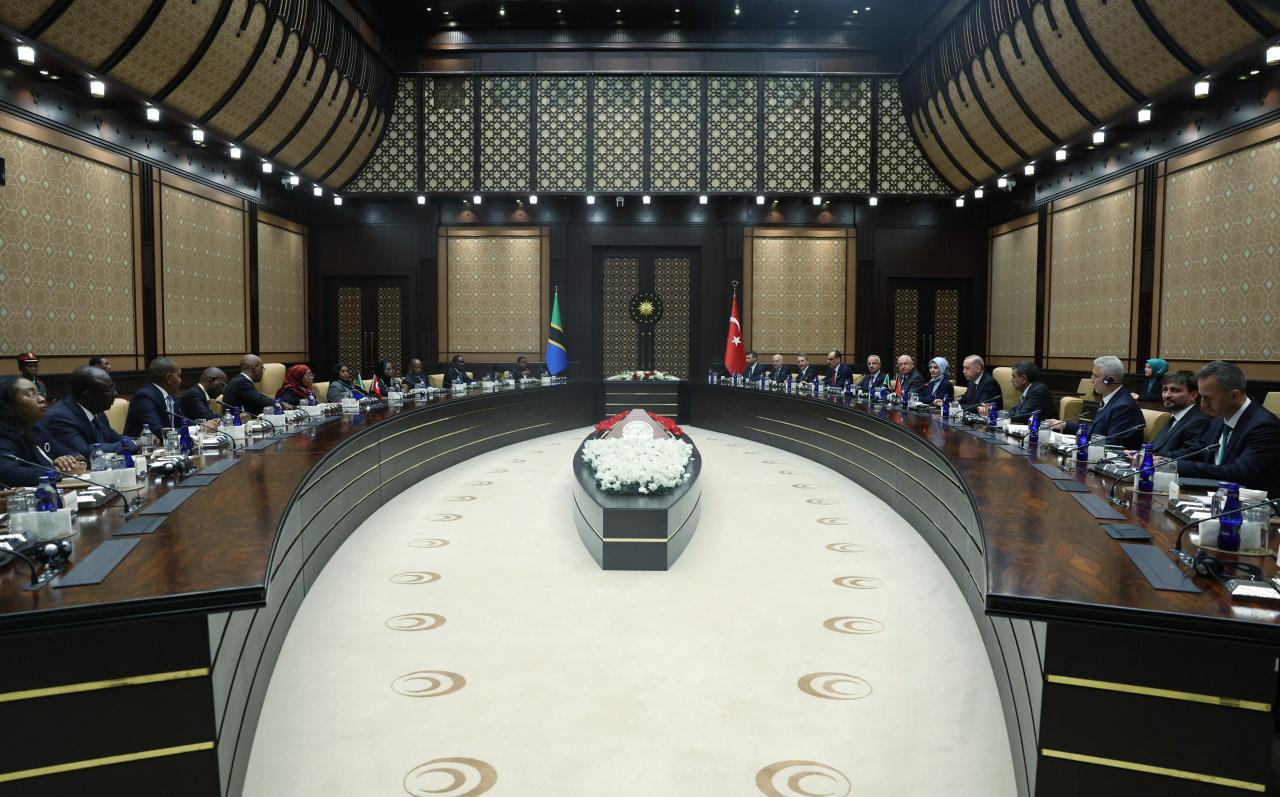 Cumhurbaşkanı Recep Tayyip Erdoğan, Cumhurbaşkanlığı Külliyesi’nde Tanzanya Birleşik Cumhuriyeti Cumhurbaşkanı Samia Suluhu Hassan ile anlaşmaların imza töreni ve ortak basın toplantısına katıldı.