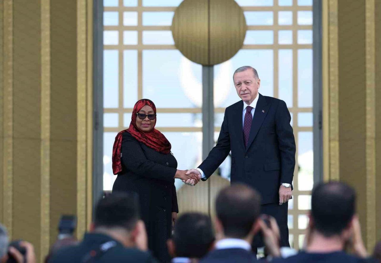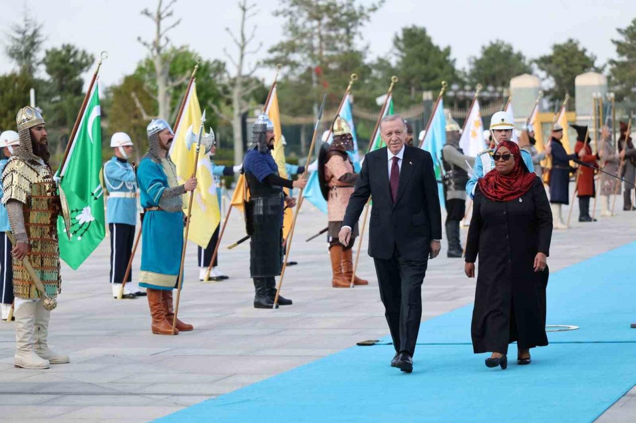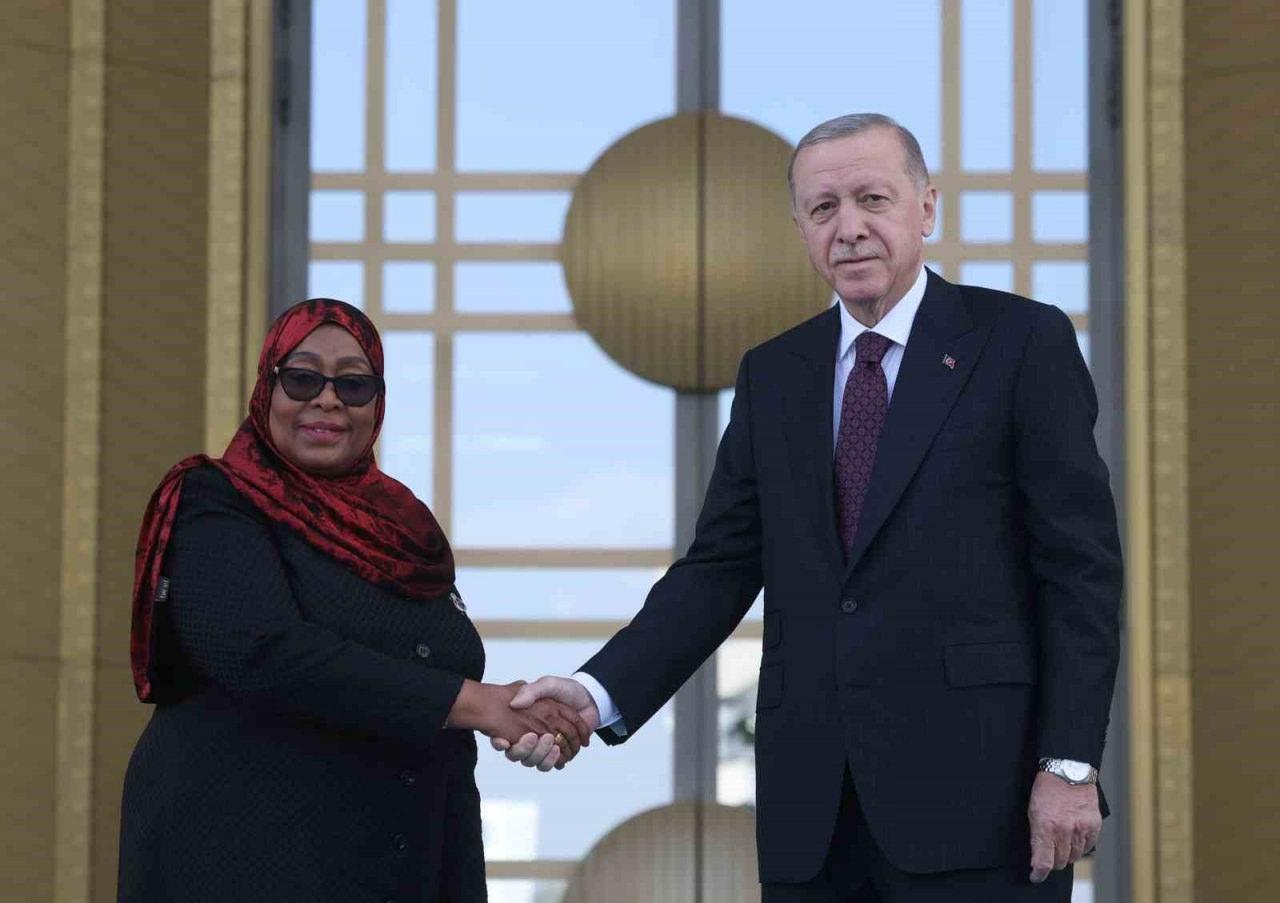 Cumhurbaşkanı Erdoğan, Tanzanya Birleşik Cumhuriyeti Cumhurbaşkanı Samia Suluhu Hassan’ı resmi törenle karşıladı.