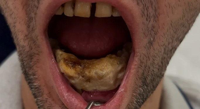 Hastanın ağzını açan diş hekimi, sallanan dişlerin düşmemesi için japon yapıştırıcısıyla yapıştırıldığını fark etti. Karşılaştığı manzara ile hayatının şokunu yaşayan doktor o anları, “Bu kansorejendir, bu yapılır mı böyle?’ ifadeleriyle kaydetti.