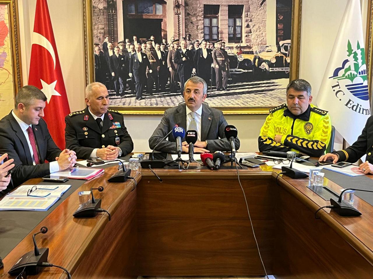 Edirne Valisi Yunus Sezer, kentte görev yapan kolluk kuvvetleri ve kurum temsilcileriyle yapılan aylık asayiş toplantısının ardından basına bilgilendirmede bulundu.