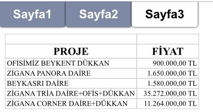 Şirketin proje aşamasında, dükkan (900 bin lira), daire (1 milyon 650 bin lira), daire (1 milyon 580 bin), daire, ofis ve dükkan (35 milyon 272 bin lira) ve daire+dükkanı (11 milyon 264 bin lira) bulunuyor.