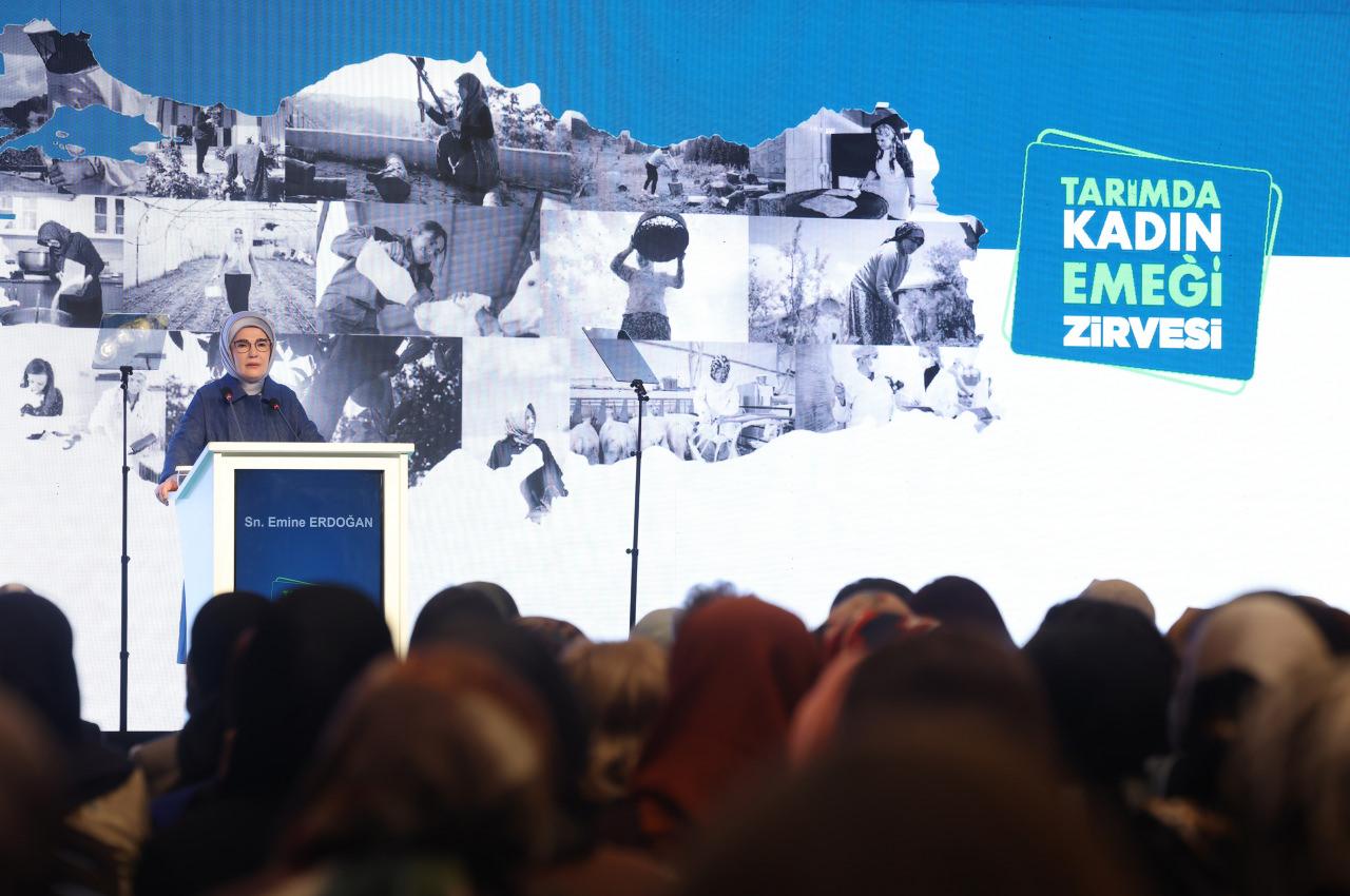 Emine Erdoğan, 8 Mart Dünya Kadınlar Günü dolayısıyla Tarım ve Orman Bakanlığının ilgili kuruluşu Tarım ve Kırsal Kalkınmayı Destekleme Kurumu (TKDK) tarafından düzenlenen “Tarımda Kadın Emeği Zirvesi”ne katıldı.