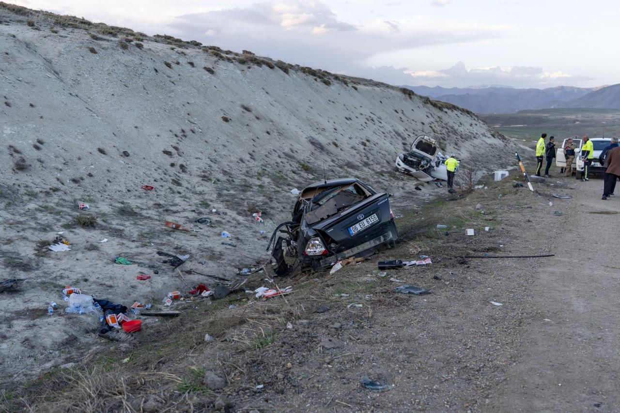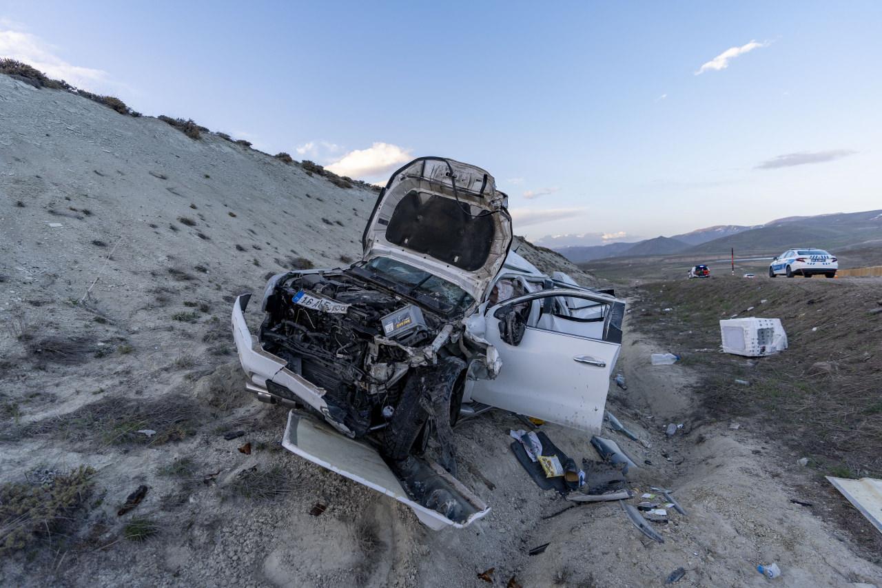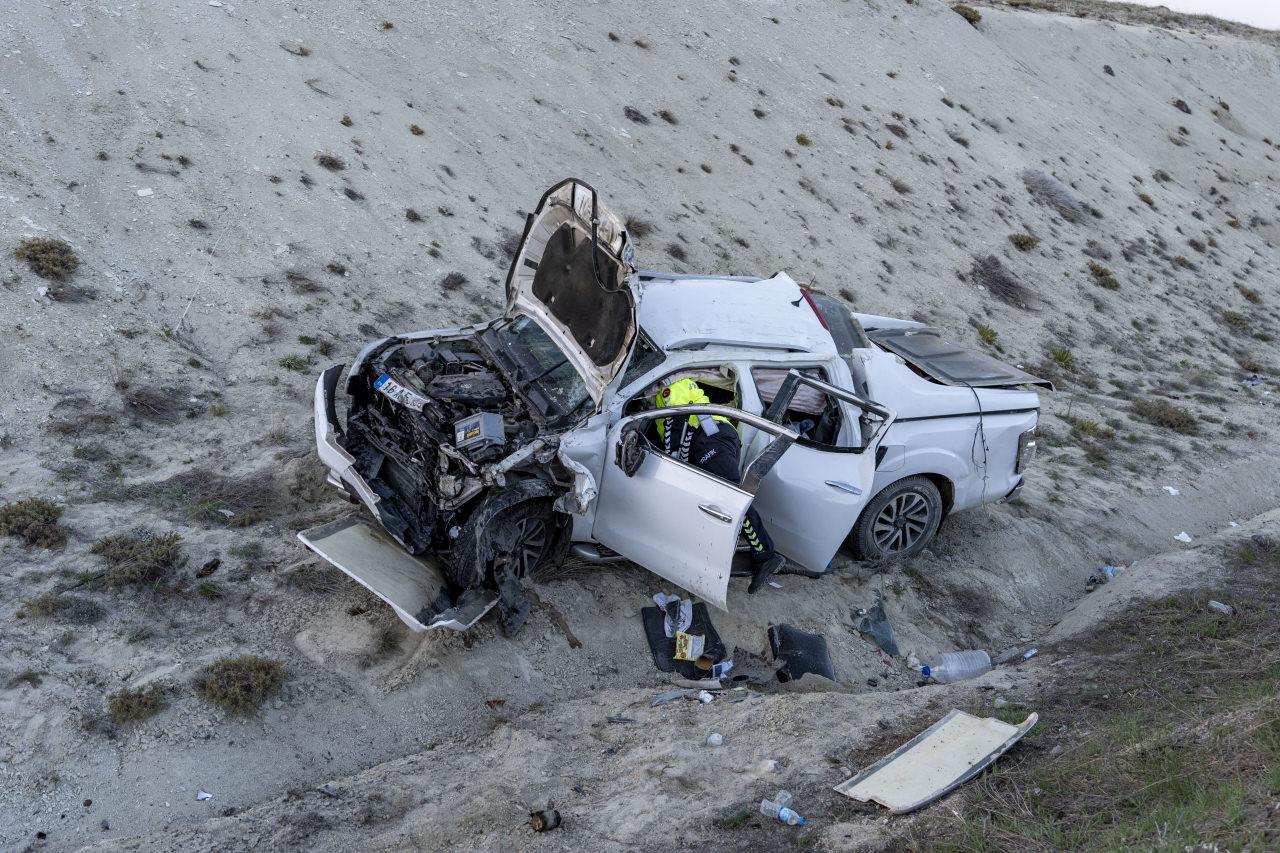 Çarpışmanın etkisiyle araçlar şarampole savruldu.
