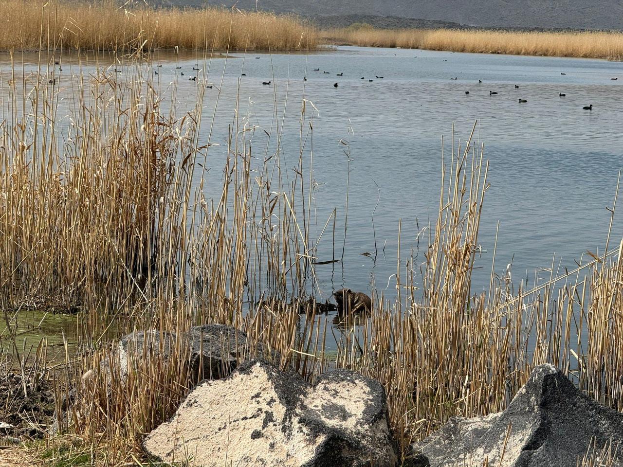 Ağrı Dağı Milli Parkı’nda bulunan Karasu Sulak Alanı'nda yaşayan su maymunları havadan ve kardan görüntülendi.