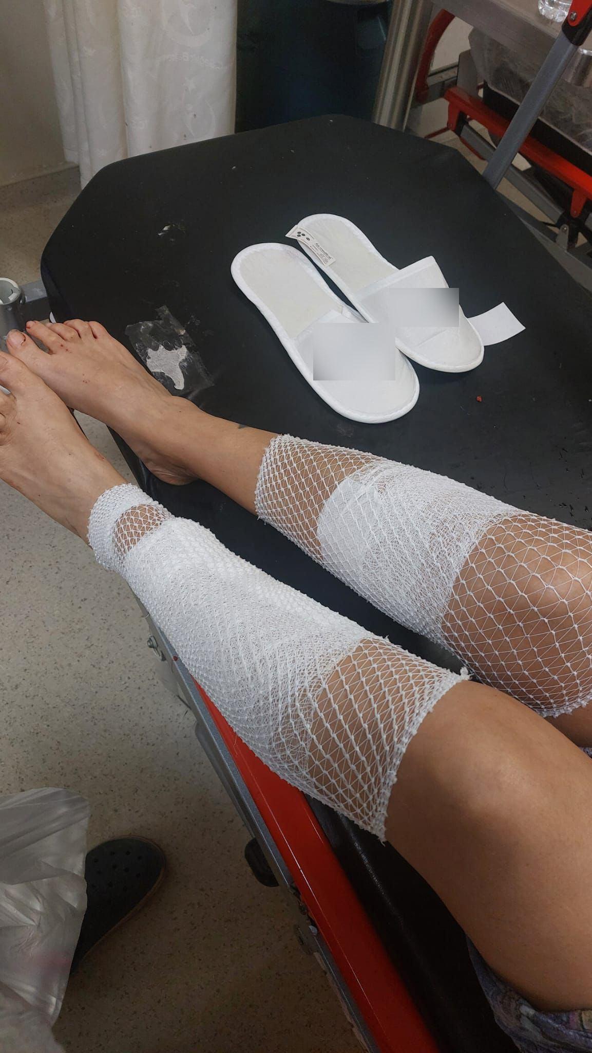 10 gün hastanede kalan genç kadının sol bacağında doku kaybı olduğu için ayağı alçıya alındı ve 1 ay sonra doku nakli olmasına karar verilerek taburcu edildi.