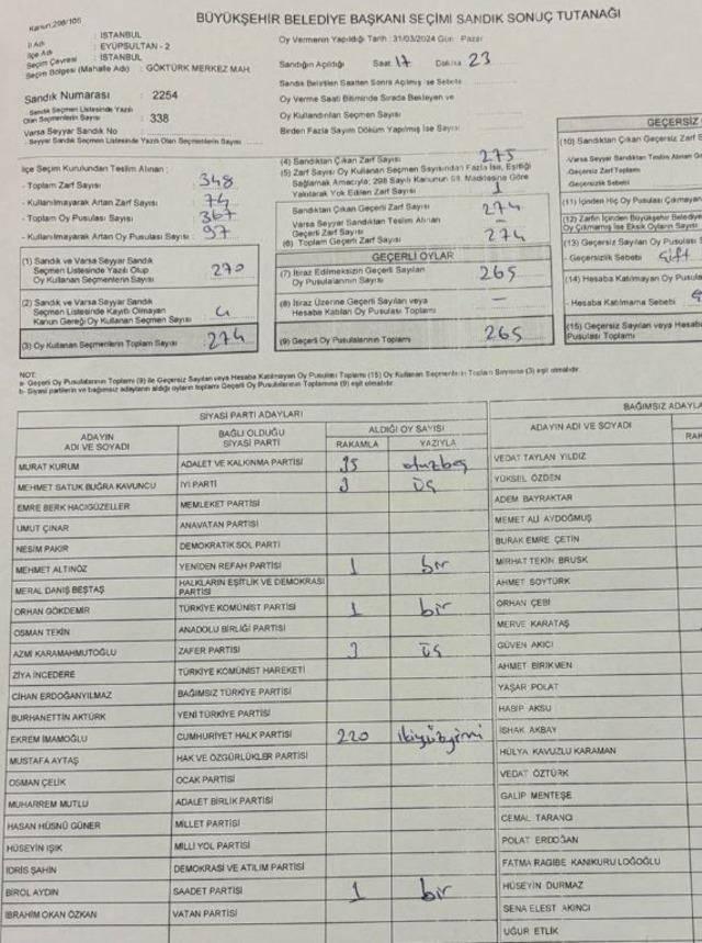 Film gibi olay: İYİ Parti’nin İstanbul adayının oy kullandığı sandıktan 3 oy çıktı