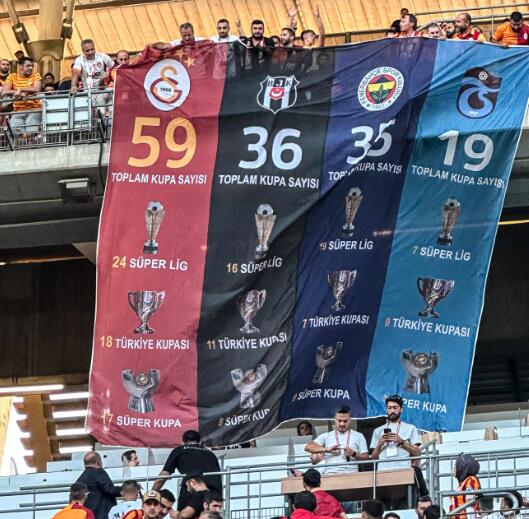 Galatasaray taraftarı, Beşiktaş maçında ezeli rakiplerine gönderme yaptı. Sarı kırmızılı takımın taraftarları, dev maçta toplam kupa sayılarının yer aldığı bir pankart açtı. Öte yandan taraftarların açtığı bu pankart, sosyal medyada gündem oldu.İŞTE AÇILAN O PANKART