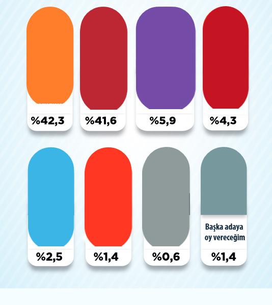 İşte sonuçlar; Birinci aday: Yüzde 42,3İkinci aday: Yüzde 41, 6Üçüncü aday: 5,9Dördüncü aday: 4,3Beşinci aday: 2,5