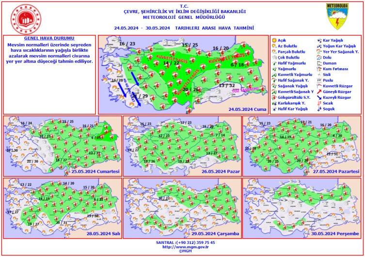 Mevsim normalleri üzerinde seyreden hava sıcaklıklarının yağışla birlikte azalarak mevsim normalleri civarına yer yer altına düşeceği tahmin ediliyor.