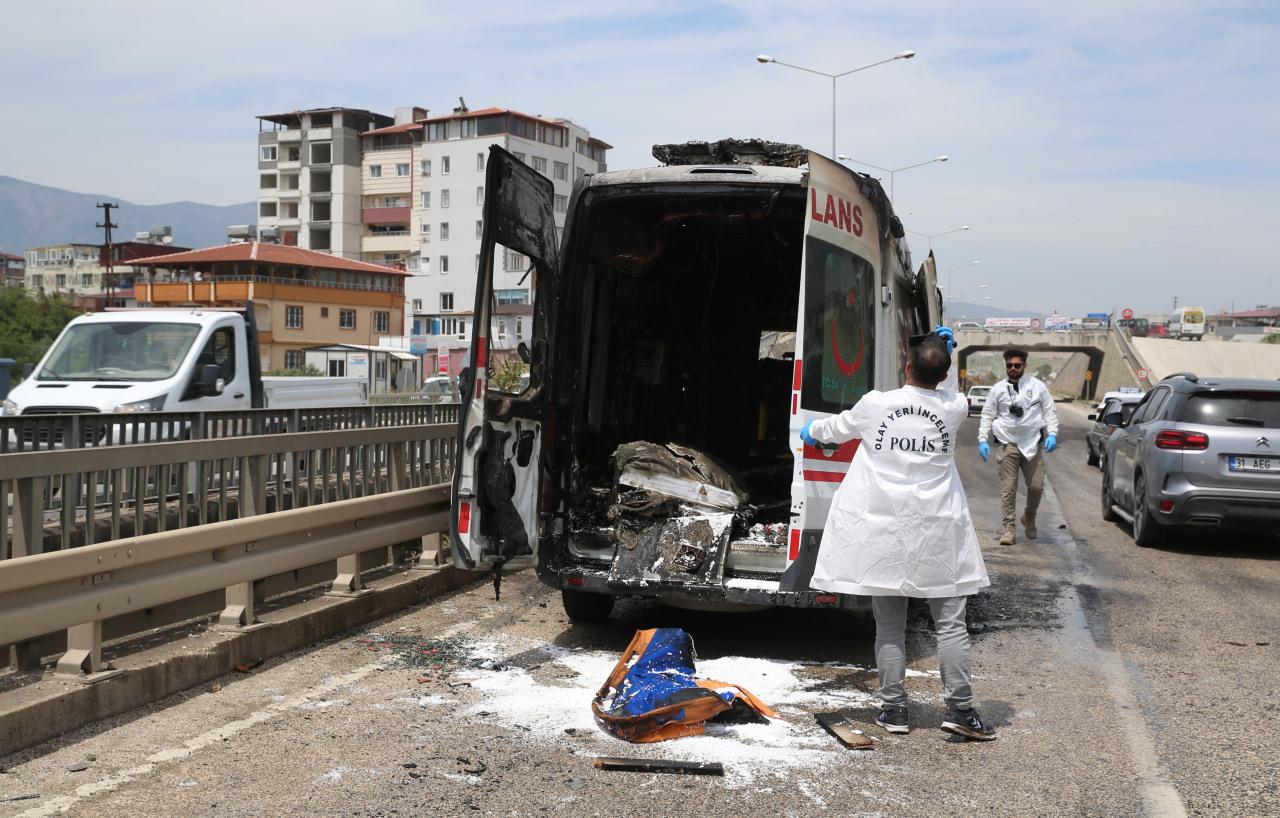 İl Sağlık Müdürlüğüne bağlı bir ambulansta, Antakya – Samandağ yolu Çekmece mevkisinde seyir halindeyken henüz bilinmeyen nedenle yangın çıktı.