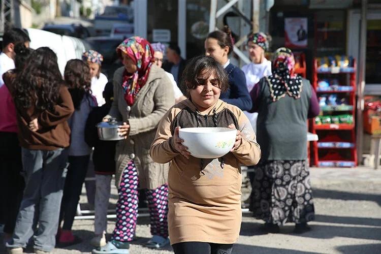 Gönüllülerce hazırlanan yemekler, ilçedeki depremzedelere ulaştırılıyor.