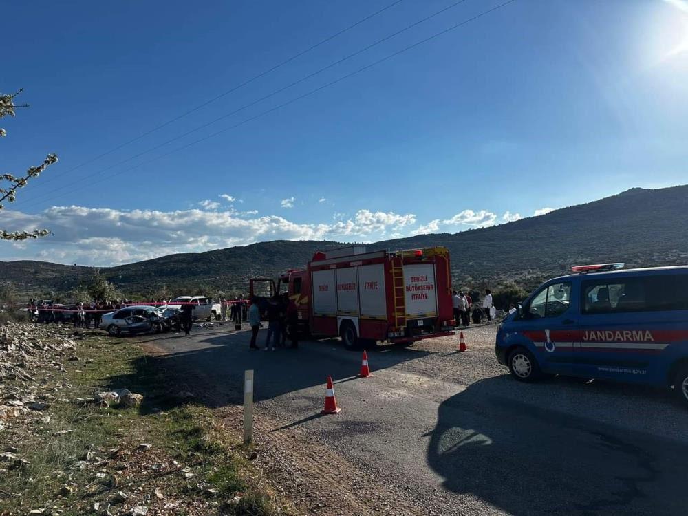 Denizli iki aracın çarpışması sonucu 2 kişi öldü, 1'i ağır 4 kişi yaralandı.