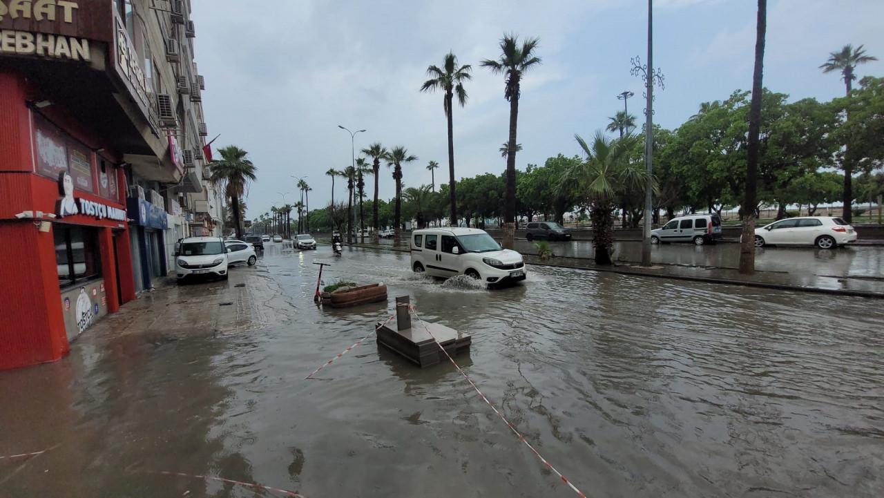 Depremden sonra zaman zaman yağmur suyunun biriktiği İskenderun sahilindeki Çay Mahallesi, Atatürk Bulvarı ve Anıt Alanı, yeniden su altında kaldı.