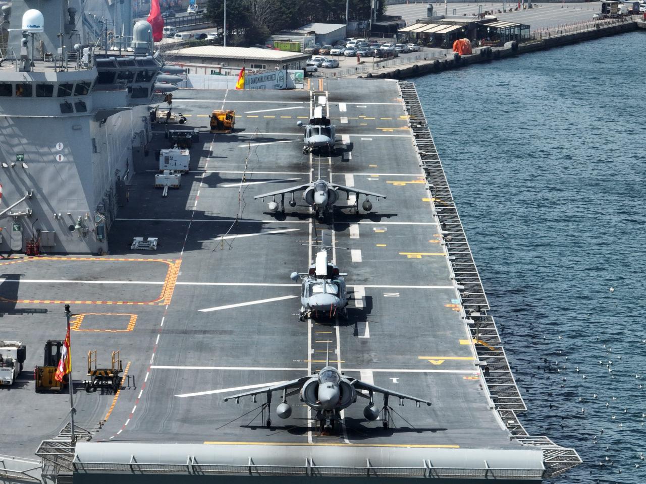 İspanya Hücum Gemisi Sarayburnu Limanı’na demirledi!■ 202 metre uzunluğunda uçuş güvertesine sahip olan gemide orta ölçekli helikopterler için 8 pist, ağır helikopterler için ise 4 pisti bulunuyor. pic.twitter.com/eWf8MEgrBl