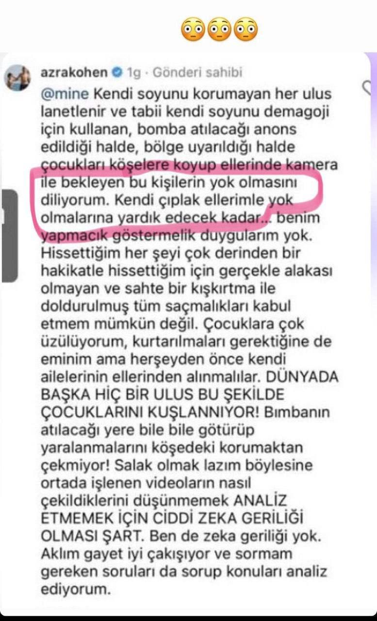 Azra Kohen’in tepkilere sebep olan Instagram’daki yorumları şöyle: