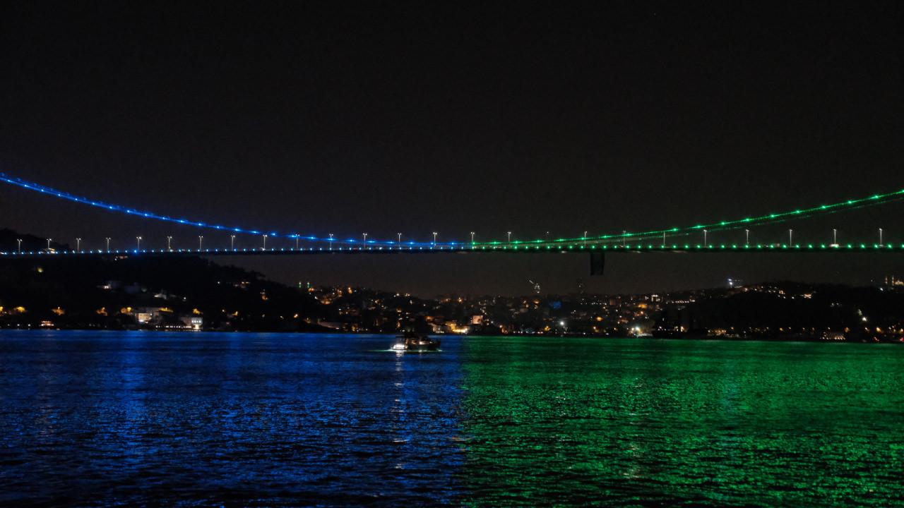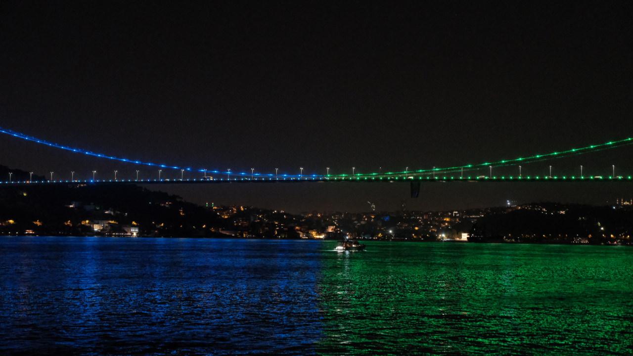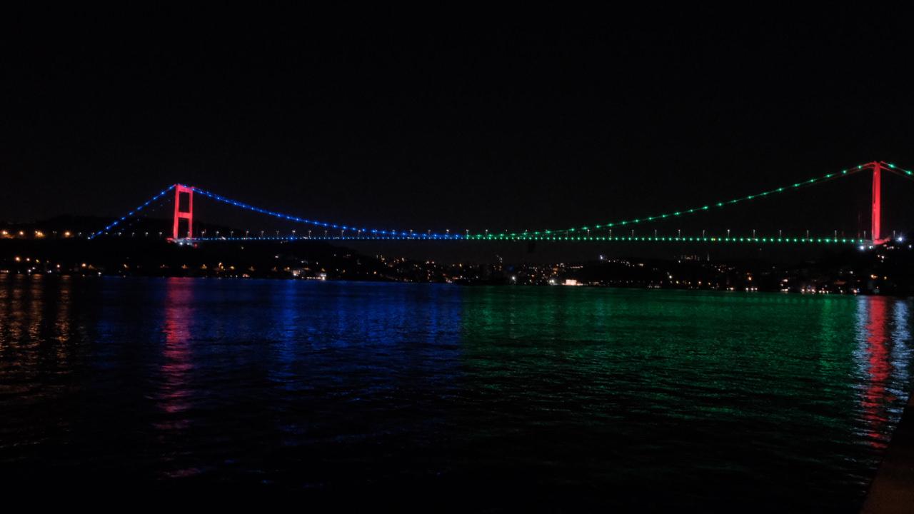 Azerbaycan’ın 28 Mayıs Bağımsızlık Günü nedeniyle 15 Temmuz Şehitler Köprüsü, Fatih Sultan Mehmet Köprüsü ve Yavuz Sultan Selim Köprüsü, Azerbaycan bayrağının renkleriyle ışıklandırıldı.