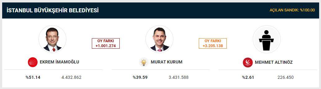 Murat Kurum 98,386 | AK Parti 100,447 | AK Parti fazla 2,061