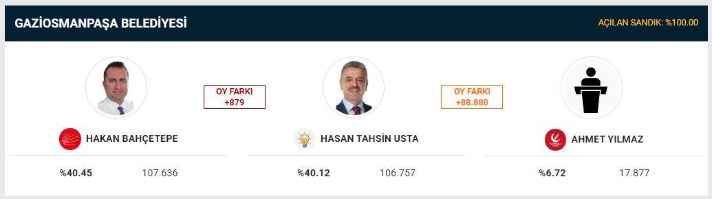AK Parti adayı Hasan Tahsin Usta Gaziosmanpaşa’da 106 bin 757 oy alarak seçimi kaybetti.